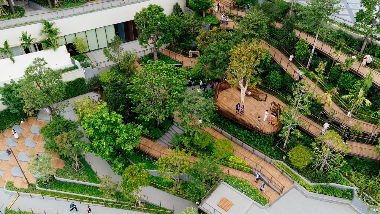 - Roof Park สวนลอยฟ้าบนพื้นที่กว่า 7 ไร่ ใหญ่ที่สุดในไทย เชื่อมต่อวิวสวนลุมพินี พร้อมดีไซน์เนินเขาลาดระดับจากชั้น 4 ถึงชั้น 6 วิวพาโนรามิก 180 องศา