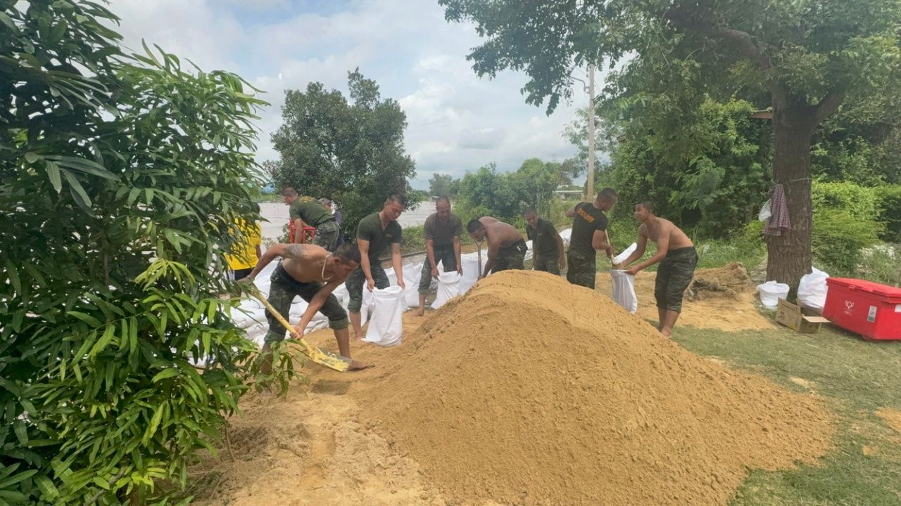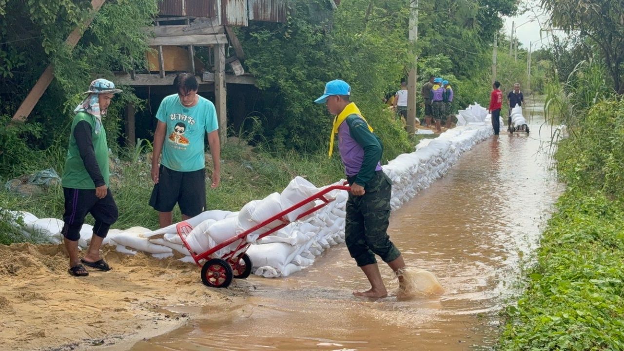 ชาวบ้านโผงเผงลุ้นระทึก น้ำเพิ่มสูงขึ้นอย่างต่อเนื่อง ด้านนายอำเภอลงพื้นที่พร้อม อบต.เร่งป้องกันวางกระสอบทรายป้องพื้นที่นอกคันกั้นน้ำ พร้อมถมเสริมคันดิน และตั้งเครื่องสูบน้ำจุดน้ำซึมด้านในเขื่อน ช่วยเหลือชาวบ้าน