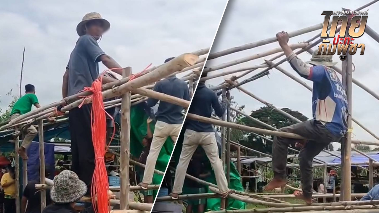 สระแก้ว ชาวกัมพูชา ยังเคลื่อนไหวต่อเนื่องที่บ้านหนองจาน “กำนันลี” สั่งคนงานก่อสร้างแคมป์ รองรับมวลชน ร่วมชุมนุมกดดัน ยั่วยุทหารไทย ขณะที่ประชาชนฝั่งไทยรวมพลังร้องเพลงชาติ-มอบอาหารและน้ำดื่ม ให้ทหารแนวหน้า