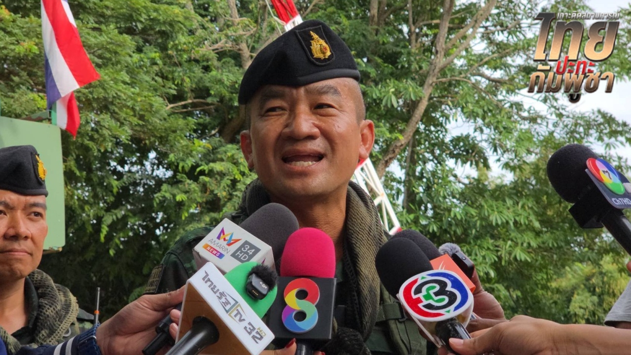ความคืบหน้าสถานการณ์ชายแดนไทย-กัมพูชา เมื่อวันที่ 5 กันยายน 2568 บริเวณ บ้านหนองจาน อำเภอโคกสูง จังหวัดสระแก้ว พ.อ.ชัยณรงค์ กาสี ผบ.ฉก.อรัญประเทศ กกล.บูรพา (ผู้บังคับหน่วยเฉพาะกิจอรัญประเทศ กองกำลังบูรพา) เปิดเผยถึงมาตรการรักษาความสงบเรียบร้อยท่ามกลางสถานการณ์ตึงเครียดในพื้นที่ชายแดน ว่า ขณะนี้กองกำลังไทยยังคงตรึงกำลังเข้มแนวหน้า พร้อมมีการสับเปลี่ยนกำลังพลอย่างต่อเนื่อง เพื่อป้องกันความเหนื่อยล้าและรักษาประสิทธิภาพในการปฏิบัติหน้าที่