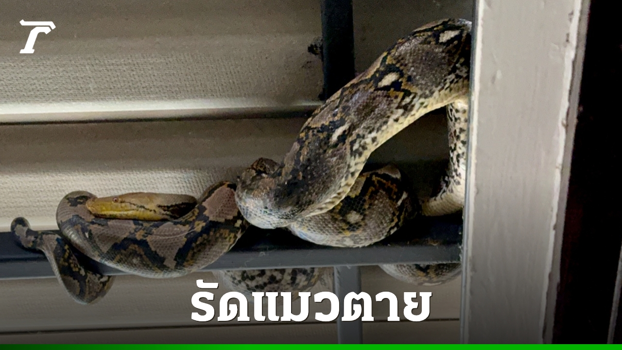 เจ้าของบ้านผวา แจ้งกู้ภัยจับ "งูเหลือม" ยาว 5 เมตร ขดตัวอยู่บนคานหลังคาบ้าน บุกรัดแมวตาย 2 ตัว