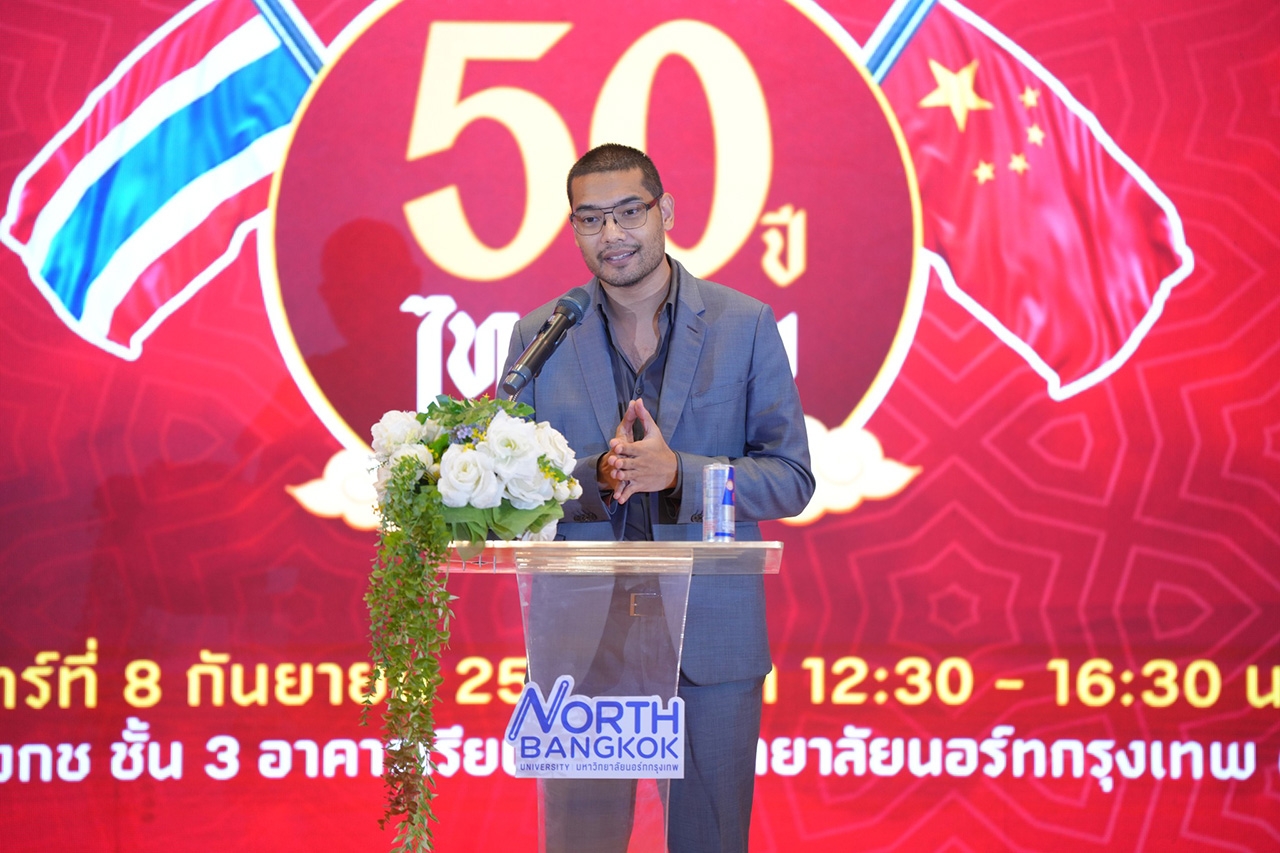 ผู้ช่วยศาสตราจารย์ ดร.สิทธิพร ประวัติรุ่งเรือง อธิการบดีมหาวิทยาลัยนอร์ทกรุงเทพ กล่าวว่า "การจัดงานในครั้งนี้ จัดขึ้นเพื่อเสริมสร้างศักยภาพของสื่อบันเทิงให้เป็นทั้งเครื่องมือทางเศรษฐกิจและวัฒนธรรมที่สะท้อนให้เห็นถึงความสัมพันธ์ไทย–จีน ที่ยาวนานตลอดครึ่งศตวรรษ อีกทั้งยังเป็นการขยายโอกาสความร่วมมือในมิติการพัฒนาเครือข่ายความร่วมมือทางวิชาการ ทางเศรษฐกิจ ทางวัฒนธรรม และทางอุตสาหกรรมสร้างสรรค์ที่มีบทบาทสำคัญในการใช้สื่อบันเทิงเพื่อสร้างคุณค่าแก่สังคม เป็นสะพานเชื่อมวัฒนธรรมและผู้คนเข้าด้วยกัน เราหวังเป็นอย่างยิ่งว่า งานในวันนี้จะเป็นจุดเริ่มต้นของการสร้างสรรค์ผลงานร่วมกันที่แข็งแกร่งและยั่งยืนยิ่งขึ้น เป็นพลังขับเคลื่อนความสัมพันธ์ไทย–จีน ให้แน่นแฟ้นยิ่งขึ้น ในอีก 50 ปีข้างหน้า"
