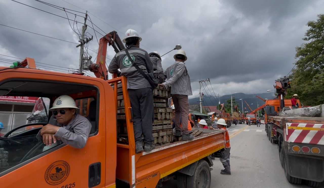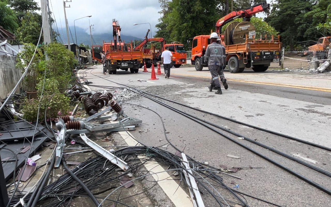 ความคืบหน้าเมื่อช่วงบ่ายวันนี้ (10 กันยายน 68) เจ้าหน้าที่การไฟฟ้าส่วนภูมิภาค ระดมกำลังจากหลายอำเภอในพื้นที่จังหวัดเชียงใหม่ เร่งนำเสาไฟฟ้าแรงสูง 115 Kv และ เสาไฟฟ้าแรงสูงขนาด 22 Kv นำไปติดตั้งใหม่ทดแทนเสาเดิมที่โค่นล้มจากอุบัติเหตุ เพื่อเร่งฟื้นฟูระบบและจ่ายกระแสไฟฟ้าให้กับชาวบ้านที่เหลืออีก 34 ครอบครัวให้ทันภายในวันนี้ ขณะเดียวกันได้ใช้เครนขนาดใหญ่เร่งเก็บกู้ซากเสาไฟฟ้าที่เสียหายเพื่อคืนพื้นที่โดยเร็วที่สุด