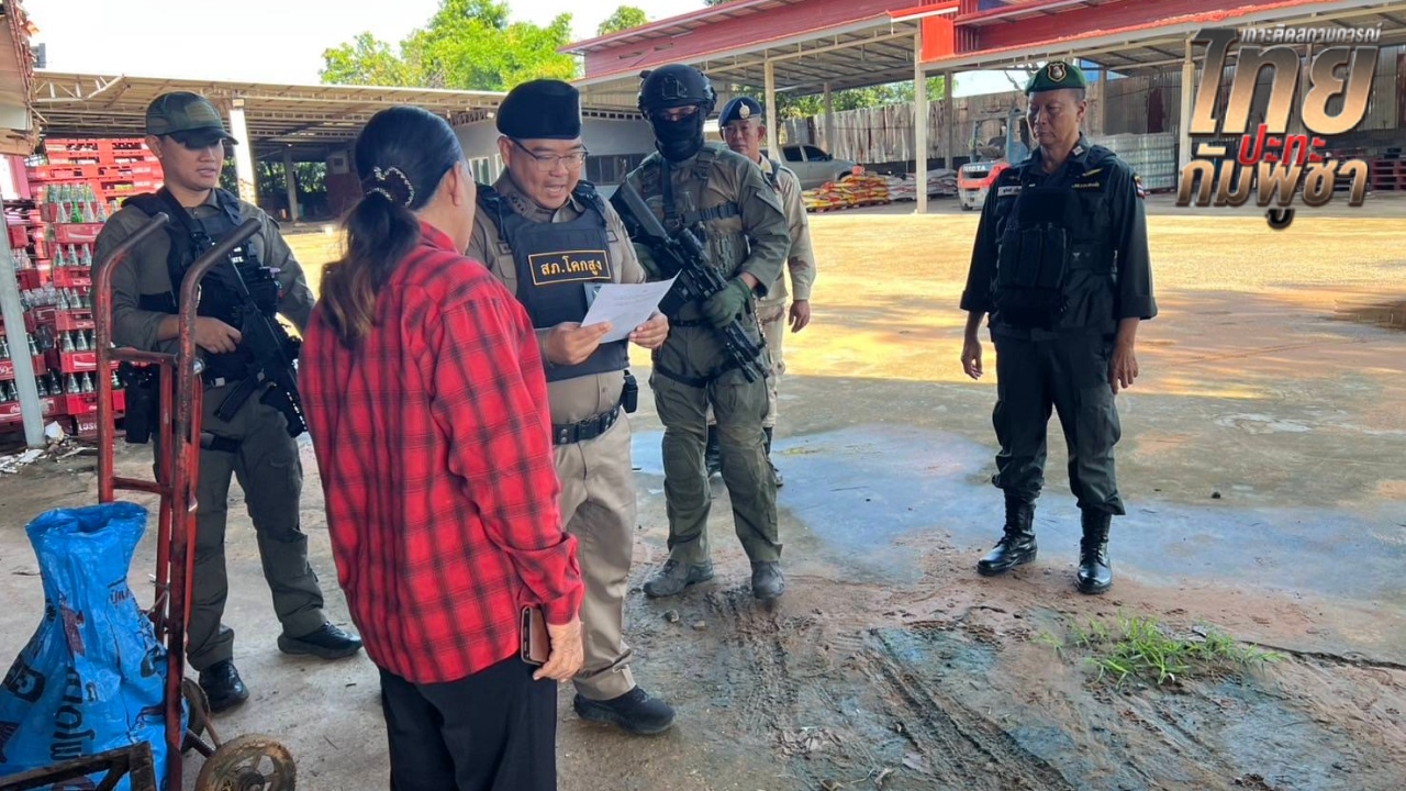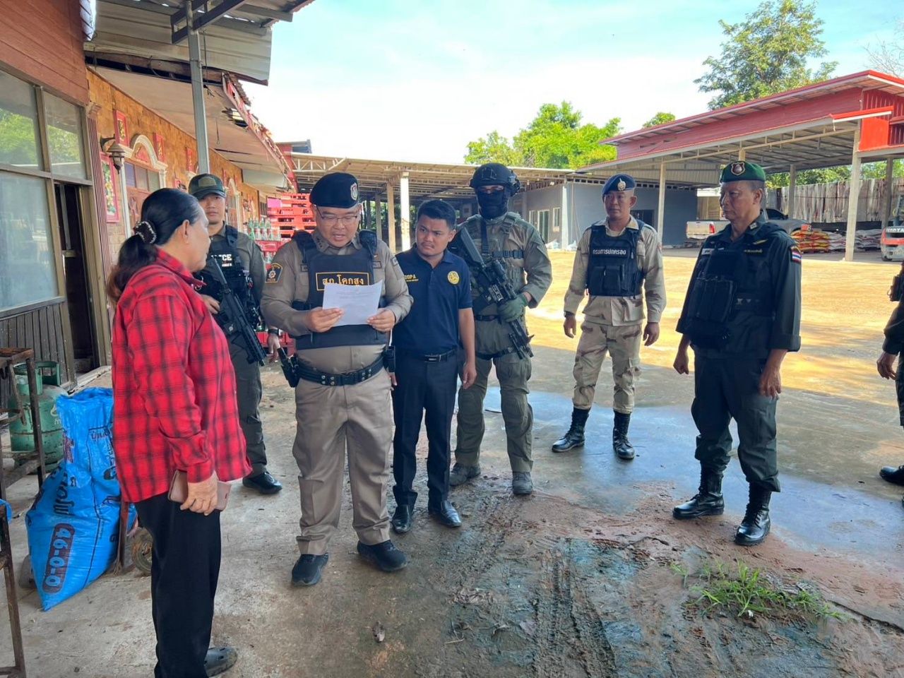 ความคืบหน้าสถานการณ์ชายแดนไทย-กัมพูชา เมื่อวันที่ 11 กันยายน 2568 ตำรวจชุดปฏิบัติการพิเศษ ภ.จว.สระแก้ว พร้อมอาวุธครบมือ ภายใต้การอำนวยการของ พ.ต.อ.ดำรง เอี่ยมไพโรจน์ ผกก.สส.ภ.จว.สระแก้ว, ว่าที่ พ.ต.อ.สุทธิพงษ์ อินทสิทธิ์ ผกก.สภ.โคกสูง, นายนริศ ปาลกะวงศ์ ณ อยุธยา นายอำเภอโคกสูง พร้อมด้วยเจ้าหน้าที่ตำรวจ สภ.โคกสูง, เจ้าหน้าที่ตำรวจ กก.สส.ภ.จว.สระแก้ว (ชป.3), เจ้าหน้าที่ตำรวจ นปพ.สระแก้ว และเจ้าหน้าที่ฝ่ายปกครอง อ.โคกสูง จ.สระแก้ว ได้นำหมายค้นของศาลจังหวัดสระแก้ว ที่ 143/2568 เข้าตรวจค้นบริเวณโกดังของ นางทองลัด กันหา หรือ “เจ๊รัตน์” ไม่มีเลขที่ ม.1 ต.โนนหมากมุ่น อ.โคกสูง จ.สระแก้ว