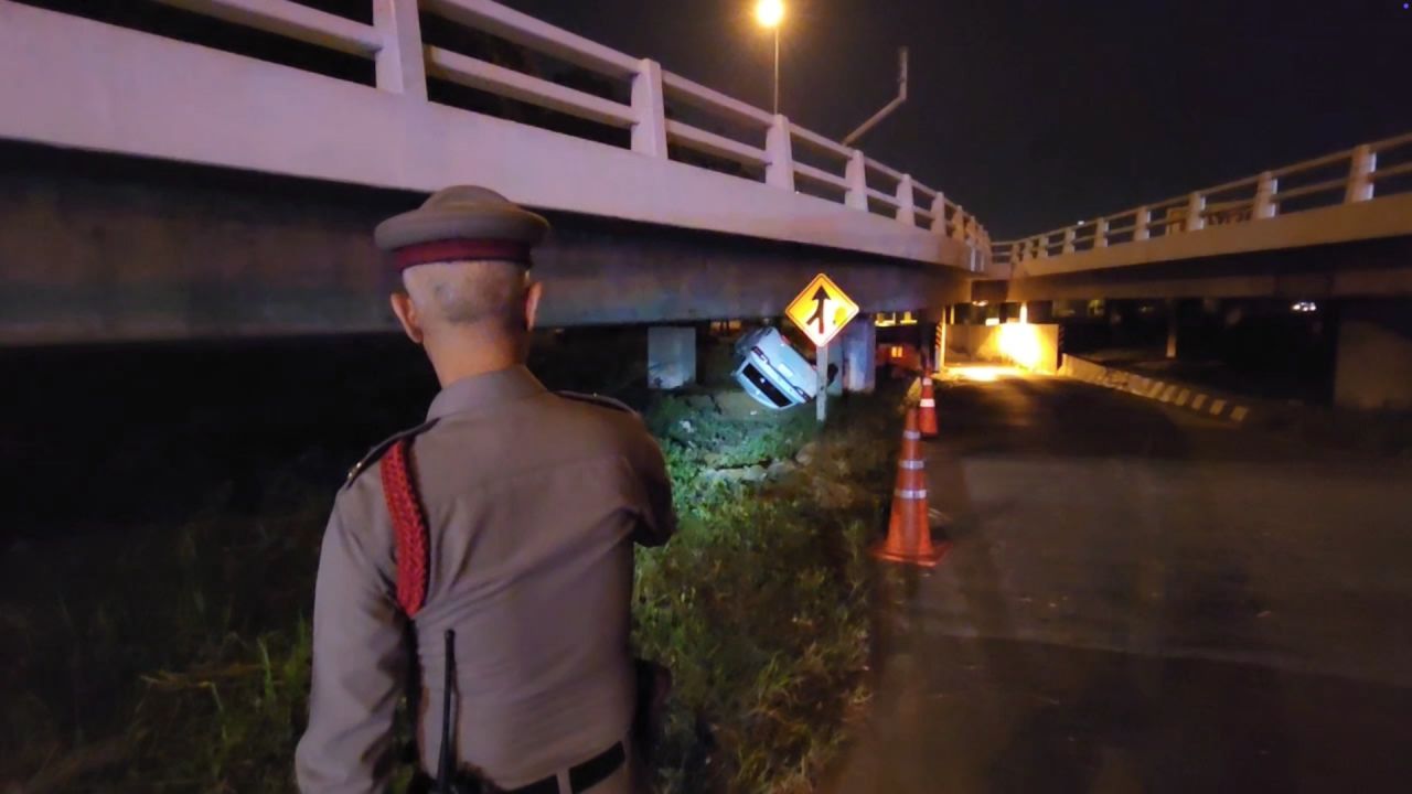 จากการสอบถามพยานที่เห็นเหตุการณ์ เล่าว่า ตนขี่รถจักรยานยนต์ตามหลังรถเก๋งและจักรยานยนต์ที่ซ้อน 3 คนมา เห็นรถเก๋งขับขึ้นสะพานก่อนจะพุ่งชนรถจักรยานยนต์อย่างแรง ทำให้รถทั้งสองกระเด็นชนขอบสะพาน แล้วร่วงลงด้านล่าง รถยนต์เก๋งพลิกคว่ำ ส่วนจักรยานยนต์และผู้บาดเจ็บกระเด็นไปในพงหญ้า