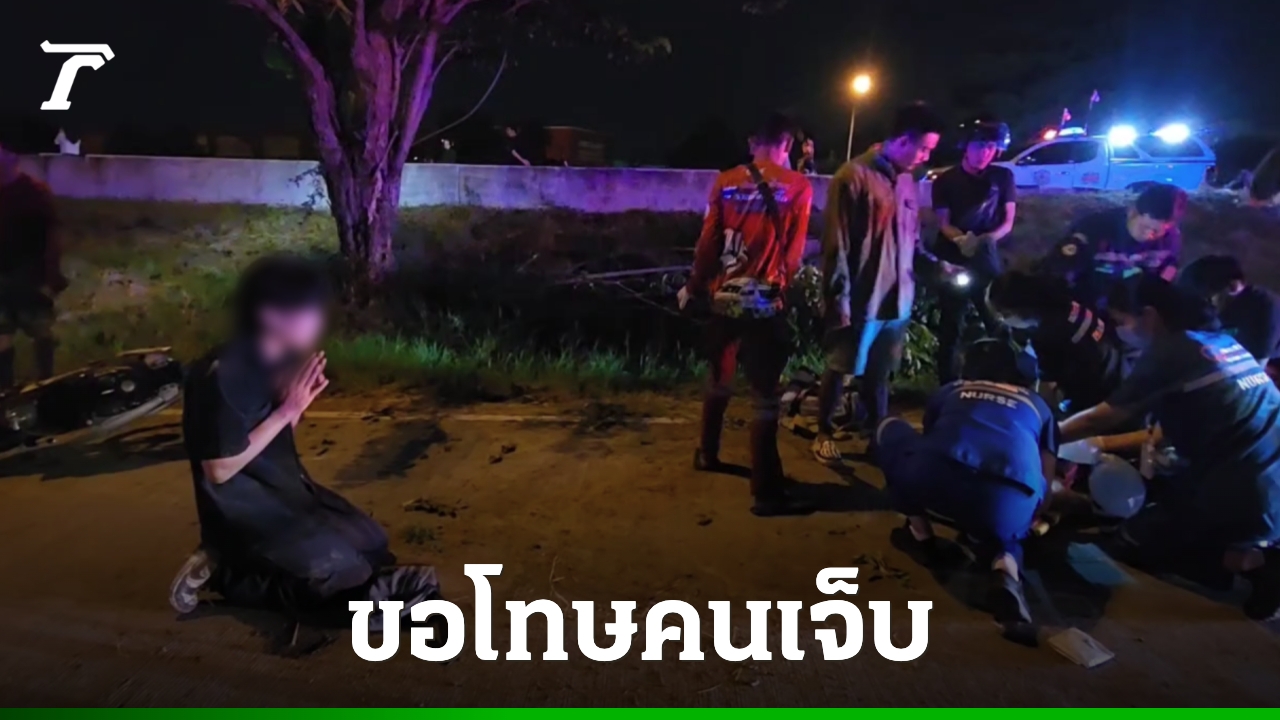 หนุ่มวัย 24 ปี ร้องไห้ กราบขอโทษ หลังขับเก๋งชนจักรยานยนต์เจ็บสาหัส 3 ราย สาบานเลิกเหล้าตลอดชีวิต เกิดเหตุบนถนนโรจนะ ขาออก ก่อนขึ้นสะพานต่างระดับอยุธยา