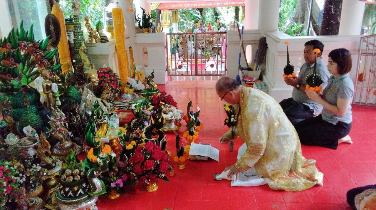 สำหรับพิธีขอขมาและอัญเชิญรูปปั้นพ่อปู่แม่ย่าในครั้งนี้ มีพ่อจ้ำชวการ คำวันสา พ่อจ้ำประจำเกาะคำชะโนด เป็นผู้นำทำพิธี