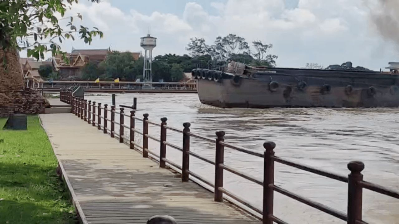 เมื่อเวลา 10.00 น. วันที่ 17 ก.ย. 68 เกิดนาทีระทึกกลางแม่น้ำเจ้าพระยา บริเวณ หน้าวังน้ำวน วัดพนัญเชิงวรวิหาร จ.พระนครศรีอยุธยา ขณะเรือยนต์ลากจูงกำลังลากเรือโป๊ะเบาทวนกระแสน้ำเข้าแม่น้ำเจ้าพระยา มุ่งหน้าสู่ จ.อ่างทอง แต่จู่ๆ กระแสน้ำเชี่ยวกรากพัดห่วงเรือโป๊ะ พุ่งตรงเข้าเกือบชนโบราณสถานป้อมเพชร ท่ามกลางเสียงร้องลุ้นระทึกของชาวบ้านที่เฝ้าดูอยู่ริมตลิ่ง