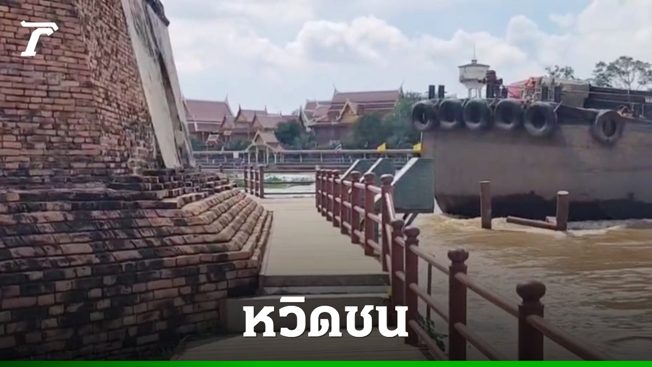 นาทีระทึก "ป้อมเพชร" โบราณสถานกรุงเก่า หน้าวังน้ำวน วัดพนัญเชิงวรวิหารหวิดแหลก หลังเรือโป๊ะพุ่งเข้าใส่ ชาวบ้านลุ้นหนักอยู่ริมตลิ่ง โชคดีเอาอยู่