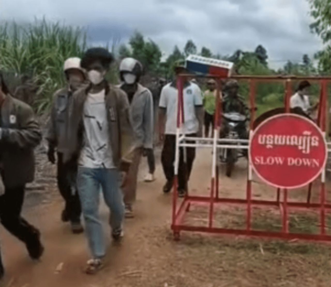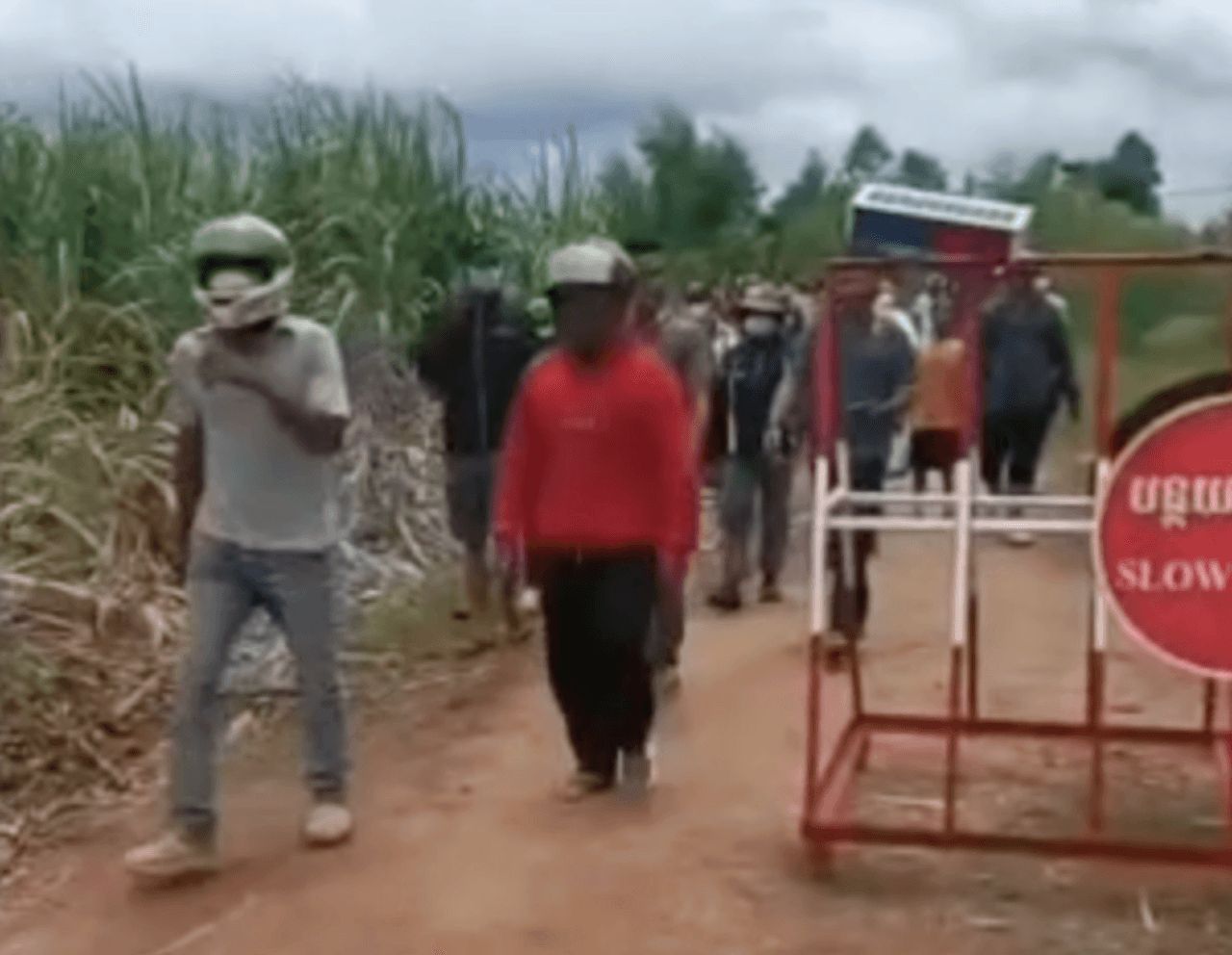 เวลา 15.00 น. กลุ่มมวลชนได้ทยอยเคลื่อนตัวออกมาตามถนนสายหลักในหมู่บ้านเพื่อรวมกลุ่มใกล้จุดพักชั่วคราว บางส่วนมีการเปล่งเสียงตะโกน และส่งสัญญาณรวมตัว ขณะที่เจ้าหน้าที่ฝ่ายปกครองกัมพูชามีการควบคุมดูแลห่าง ๆ แต่ไม่มีการสลายฝูงชน