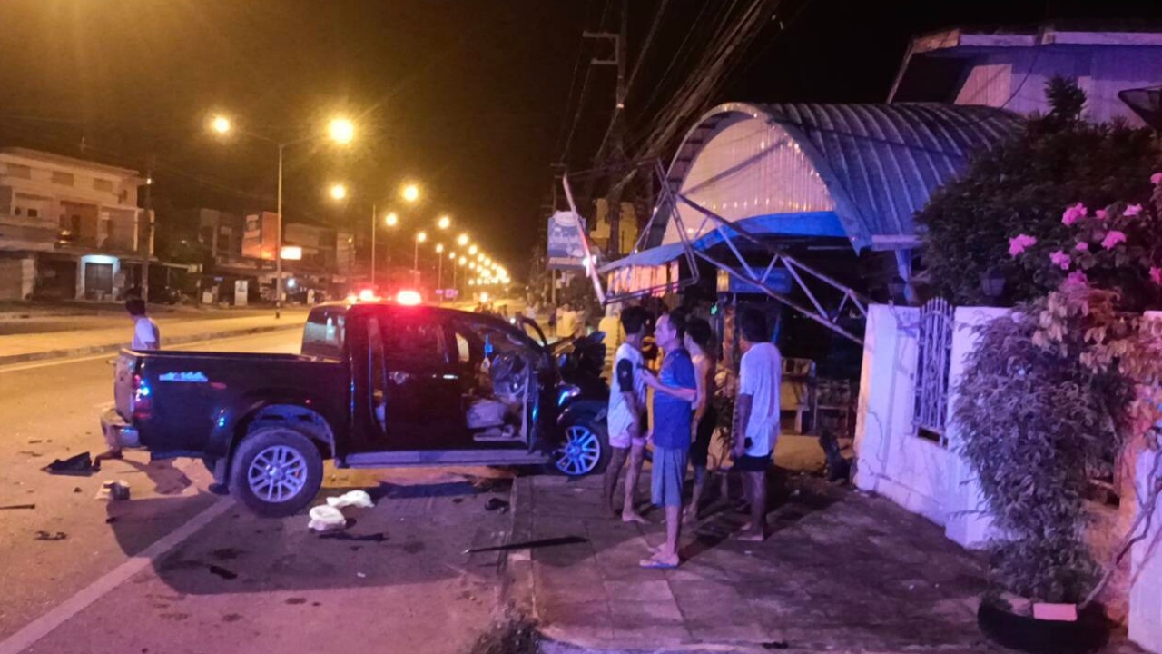 โดยภาพจากกล้องวงจรปิดบันทึกชัด รถกระบะพุ่งชนท้ายรถเก๋งลากไกลกว่า 50 เมตร ก่อนพุ่งชนเสาเหล็กและกำแพงบ้านจอดสนิทกลางถนน ขณะที่รถเก๋งยังไถลต่อไปอีกเกือบ 50 เมตร ทำให้มีผู้บาดเจ็บรวม 3 ราย และทรัพย์สินรอบข้างเสียหายหลายจุด