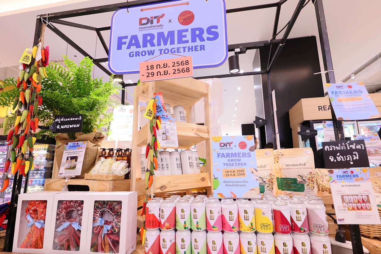 กรมการค้าภายใน กระทรวงพาณิชย์ ร่วมกับ กูร์เมต์ มาร์เก็ต พรีเมียมซูเปอร์มาร์เก็ตระดับเวิลด์คลาส ภายใต้การบริหารโดย เดอะมอลล์ กรุ๊ป จัดงาน “DIT X Gourmet Market Farmers Grow Together” เคียงข้างเกษตรกรไทยไปด้วยกัน เปิดพื้นที่สนับสนุนผู้ประกอบการรายย่อยและช่วยเหลือเกษตรกรไทยในการแก้ปัญหาสินค้าล้นตลาด ชวนอุดหนุนสินค้าคุณภาพส่งตรงจากเกษตรกรไทย นำโดย ข้าวหอมมะลิคุณภาพดีที่ได้รับรางวัลการประกวดข้าวหอมมะลิของประเทศไทย นอกจากนี้ยังมีผัก ผลไม้ เนื้อสัตว์ ตลอดจนสินค้าแปรรูป, สินค้า OTOP และสินค้าหัตถกรรมรวมกว่า 80 รายการมาให้เลือกซื้อในราคาพิเศษ ตั้งแต่วันนี้ – 29 กันยายน 2568 ที่ กูร์เมต์ มาร์เก็ต ชั้น G สาขาพารากอน ดีพาร์ทเม้นท์สโตร์