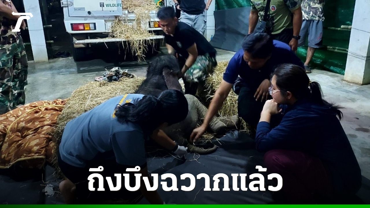 ภารกิจเคลื่อนย้ายสำเร็จ "น้องข้าวต้ม" ลูกช้างป่าพลัดหลงที่ทองผาภูมิ จ.กาญจนบุรี ถึงมือสัตวแพทย์ผู้เชี่ยวชาญที่บึงฉวากแล้ว เตรียมตรวจสุขภาพ เริ่มกระบวนการฟื้นฟู
