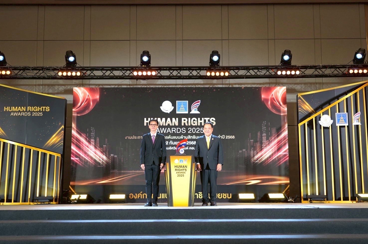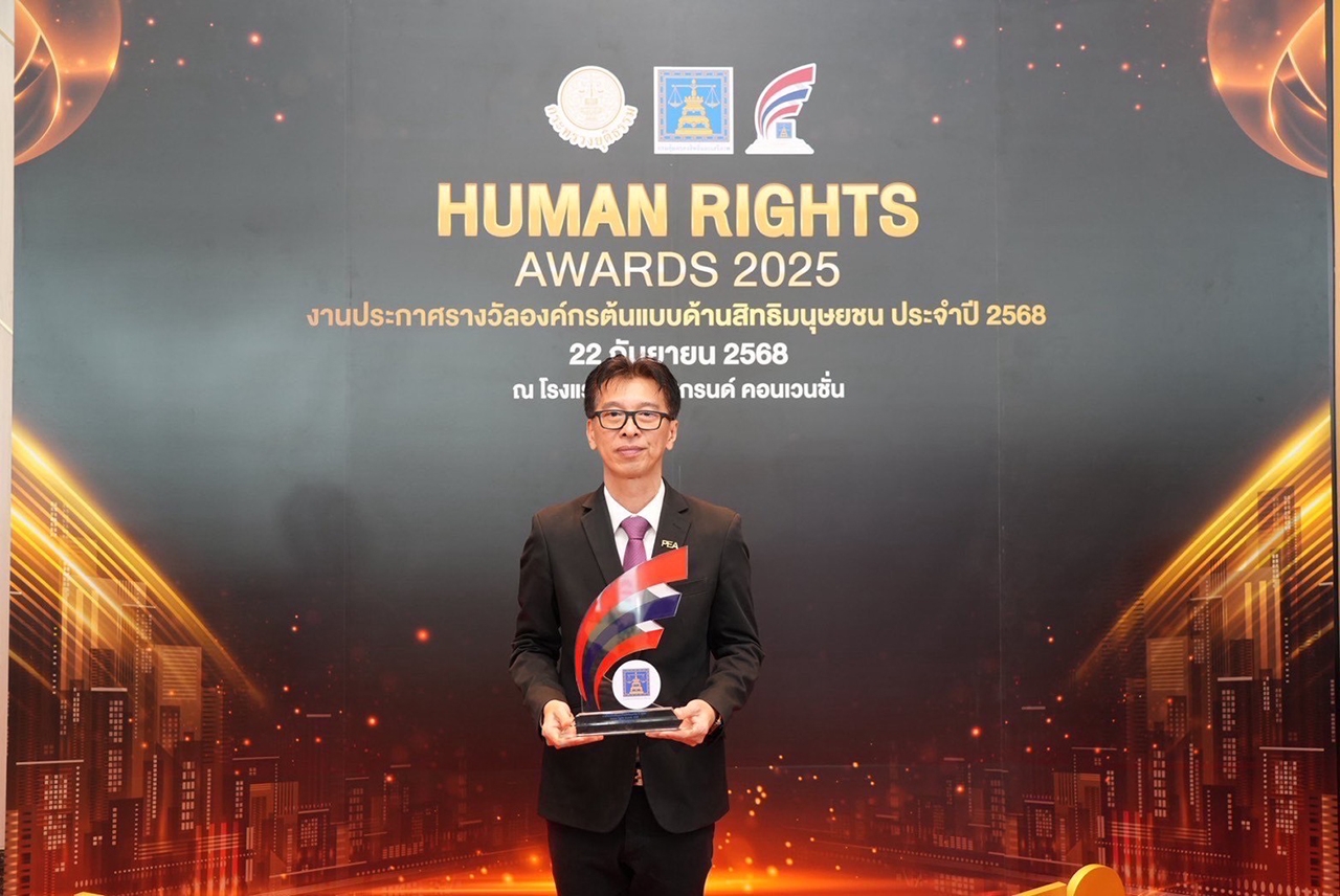 นายมนต์ชัย ดานุโพธิ์บริบูรณ์ รองผู้ว่าการการไฟฟ้าส่วนภูมิภาค รับรางวัลองค์กรต้นแบบด้านสิทธิมนุษยชน ประจำปี 2568 ระดับดีเด่น ประเภทองค์กรรัฐวิสาหกิจ ณ ห้อง Asawin Grand Ballroom ชั้น 4 โรงแรมอัศวิน แกรนด์ คอนเวนชั่น กรุงเทพฯ