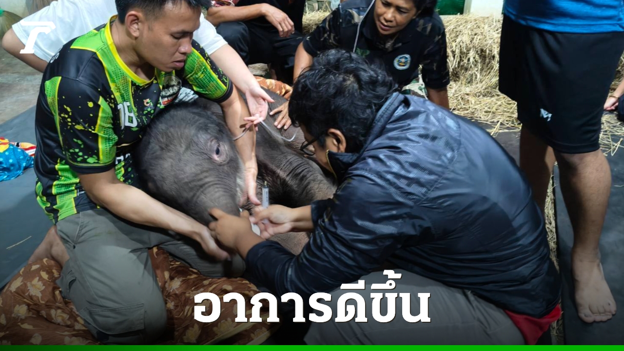 คืบหน้าอาการ "น้องข้าวต้ม" ลูกช้างป่าพลัดหลง อาการดีขึ้นต่อเนื่อง พยายามจะลุกขึ้นยืนได้เอง ทีมสัตวแพทย์ดูแลใกล้ชิดตลอด 24 ชั่วโมง