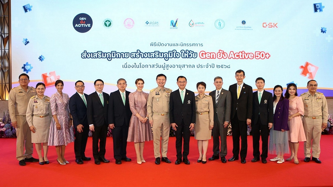 โครงการ Gen ยัง Active 50+ จัดเสวนา “บูรณาการเชิงรุกเพื่อส่งเสริมสุขภาพเชิงป้องกันในระยะยาวของประเทศไทย” ในงาน “ส่งเสริมภูมิกาย สร้างเสริมภูมิใจ ให้วัย Gen ยัง Active 50+” เนื่องในวันผู้สูงอายุสากล (International Day of Older Persons) ระดมผู้กำหนดนโยบายสุขภาพระดับประเทศ กรมควบคุมโรค กรมอนามัย สถาบันวัคซีนแห่งชาติ สำนักงานหลักประกันสุขภาพแห่งชาติ กรุงเทพมหานคร และคณะแพทยศาสตร์ศิริราชพยาบาล ร่วมแสดงวิสัยทัศน์และแนวทางการขับเคลื่อนระบบสุขภาพไทย ตอบโจทย์ความท้าทายของสังคมสูงวัย เพื่อพัฒนาคุณภาพชีวิตของผู้สูงอายุในประเทศไทยให้ดีขึ้นอย่างยั่งยืน
