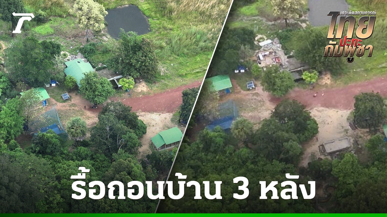 กองทัพเรือ เผยภาพมุมสูง ก่อน-หลัง ผลักดันกำลังฝ่าย "กัมพูชา" และรื้อถอนบ้าน 3 หลัง ที่ปลูกสร้างรุกล้ำอธิปไตยไทย บริเวณฝั่งตรงข้ามบ้านหนองรี ต.ชำราก จ.ตราด ที่สร้างความกังวลให้ ปชช. ในพื้นที่มายาวนาน