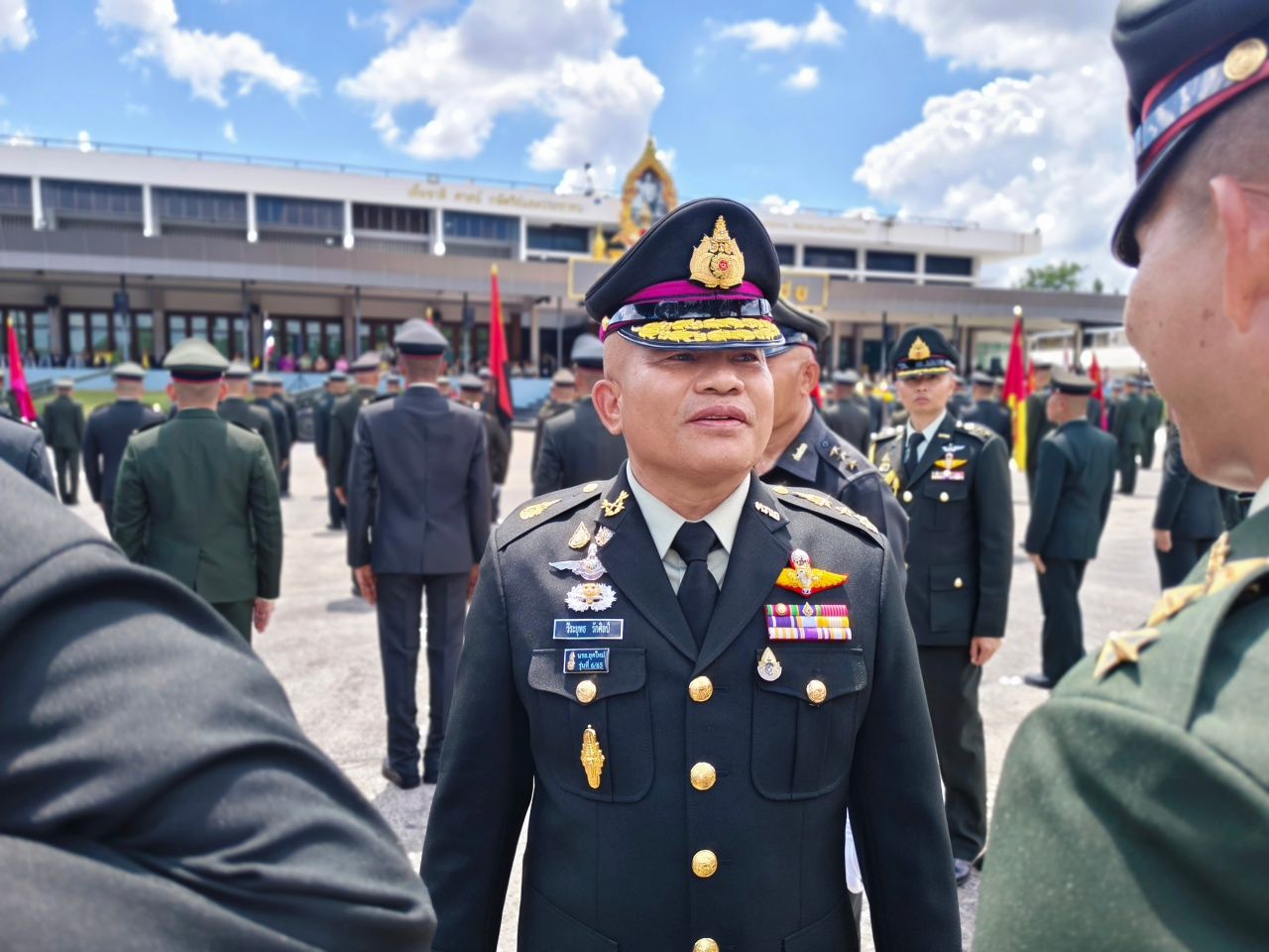 ความคืบหน้าสถานการณ์ชายแดนไทย-กัมพูชา เมื่อวันที่ 2 ตุลาคม 2568 พลโทบุญสิน พาดกลาง อดีตแม่ทัพภาคที่ 2 ตอบคำถามสื่อมวลชนหลังเสร็จสิ้นพิธีรับ-ส่ง หน้าที่ // ผู้สื่อข่าวถามว่าซึ้งไหมครับ เห็นแล้วน้ำตาคลอไหมที่น้อง ๆ มาส่ง // พลโทบุญสินตอบว่าเหมือนยังไม่เกษียณ ยังมีงานรออยู่ข้างหน้า // เมื่อถามว่าเป็นห่วงมากไหม พลโทบุญสินบอกว่า ไม่ครับ เพราะอยู่กับแม่ทัพคนใหม่ตลอด