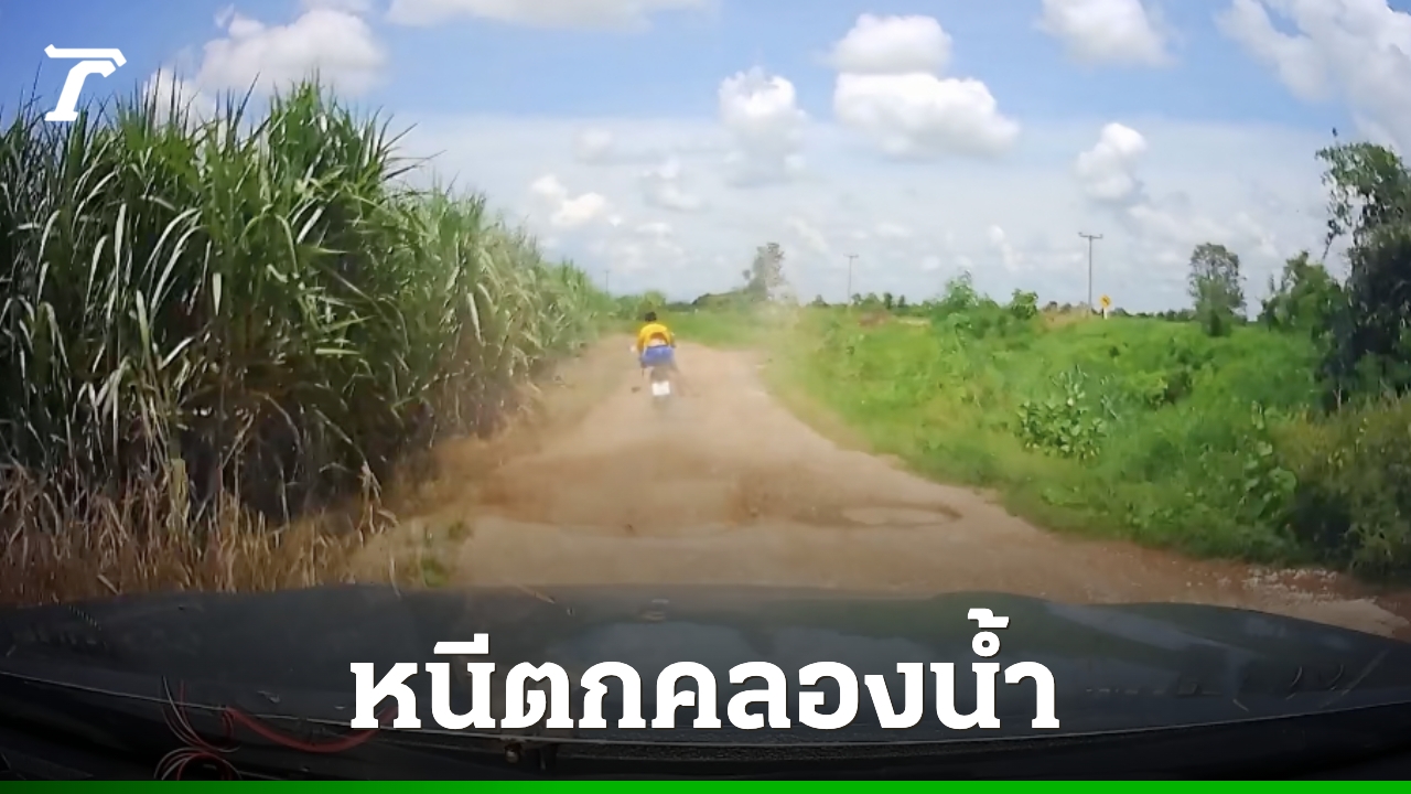 เปิดคลิปนาที ตร. ตามจับ "พ่อค้ายาเสพติด" รายย่อยในหมู่บ้าน หลังรู้ตัวถูกวางแผน "ล่อซื้อยาบ้า" ขี่ จยย. หลบหนีจนสุดท้ายพุ่งตกคลองน้ำข้างทาง