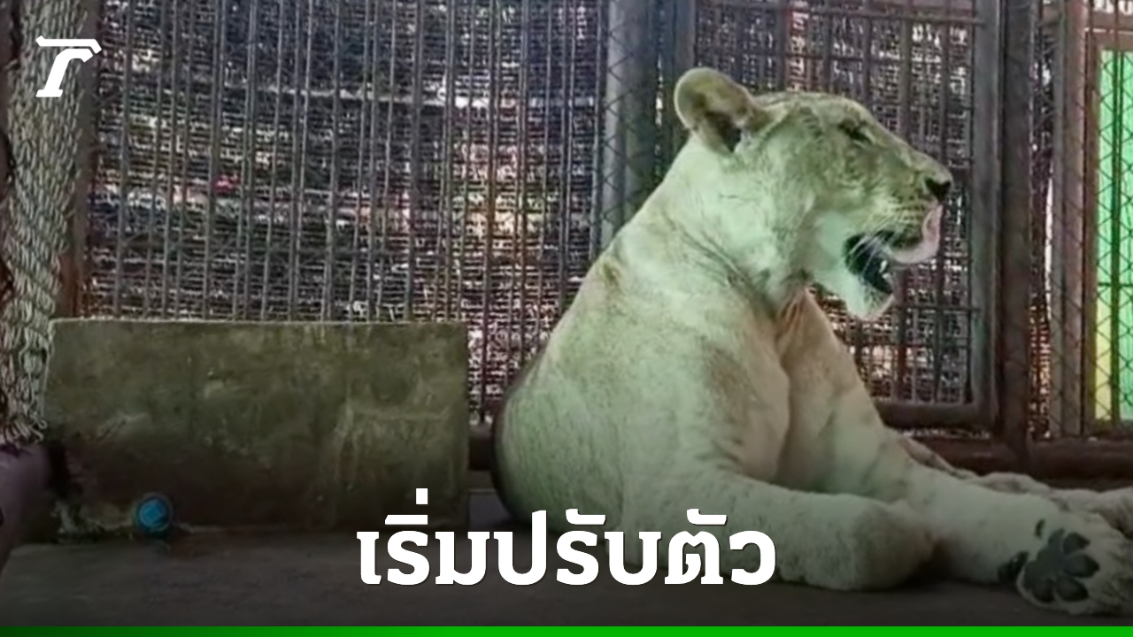 "มเหสี" ลูกสิงโตเริ่มปรับตัว เข้ากับพี่เลี้ยง 2 คนที่จัดไว้ดูแล พร้อมทานอาหารที่เตรียมให้ได้ ยกเว้นโครงไก่ โดยขณะนี้ยังอยู่ในกรงเลี้ยง กักโรคให้ครบ 7 วัน ก่อนปล่อยเดินเล่นในโซนที่เป็นคอก