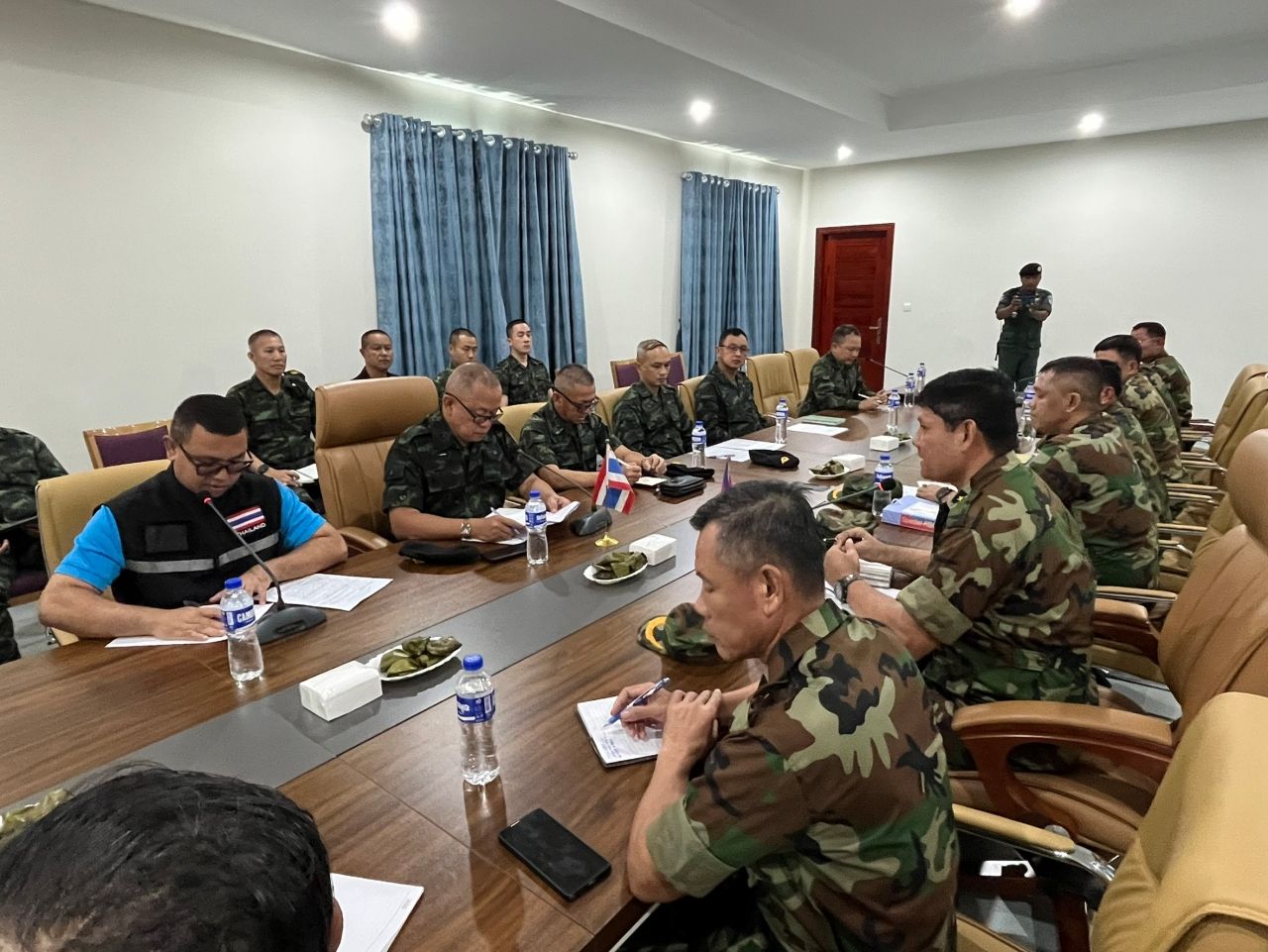 เมื่อเวลา 10.00 น. วันที่ 10 ตุลาคม 2568 ที่อำเภอกรุงสำโรง จังหวัดอุดรเมียนจีย์ (ตรงข้ามด่านผ่านแดนถาวรช่องจอม) ประชุมคณะกรรมการชายแดนส่วนภูมิภาค (RBC) ไทย-กัมพูชา นำโดย พลตรี กัมปนาท วาพันสุ ประธานกองเลขานุการ คณะกรรมการชายแดนส่วนภูมิภาคไทย-กัมพูชา / เสนาธิการศูนย์ปฏิบัติการ กองทัพภาคที่ 2 และพลจัตวา นิด ณารง รองเสนาธิการภูมิภาคทหารที่ 4 ของกัมพูชา ประชุมพูดคุยถึงรายละเอียด