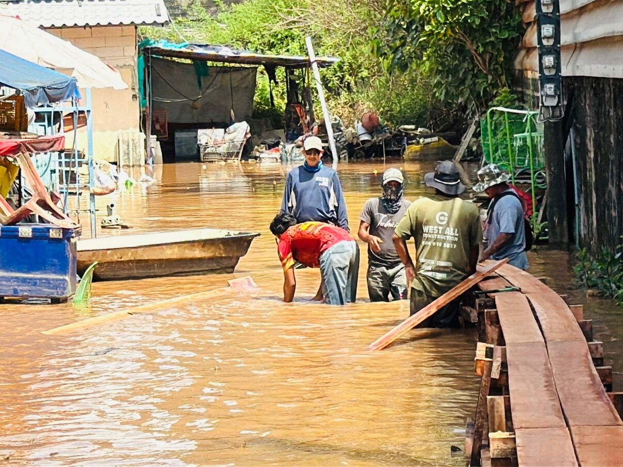 นายนิพนธ์ สกุลวีรวรรณ รองนายกเทศมนตรีนครนนทบุรี กล่าวว่า วันนี้ลงมาดำเนินการสร้างสะพานเดินเท้าในชุมชนวัดแจ้งสิริสัมพันธ์ ซึ่งก่อนหน้านี้ทางเทศบาลนครนนทบุรี ได้มีแผนเข้าดำเนินการสร้างสะพานอยู่แล้ว แต่อยู่ระหว่างรอไม้ โดยหลังสำรวจพบว่ามีชาวบ้านเดือดร้อน เพราะมีน้ำขังสูงในซอยแยกย่อย ส่วนถนนหลักมีน้ำขึ้นลงจนสามารถสัญจรได้ ส่วนในซอยแยกย่อยถนนเป็นพื้นดิน เมื่อน้ำท่วมขังจะเป็นโคลนทำให้เดินทางลำบาก