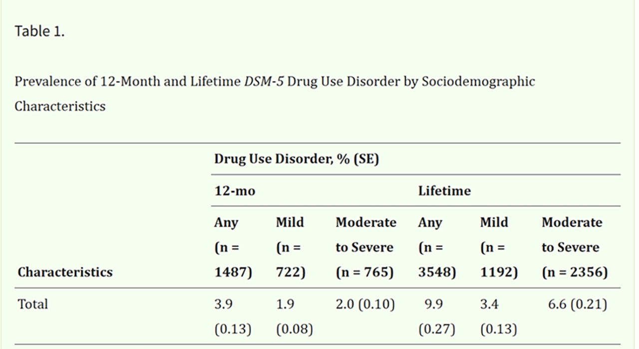 และไม่เพียงเท่านั้น ศูนย์ศึกษาปัญหายาเสพติด ยังพบว่าหากเสพอย่างต่อเนื่องจะมีโอกาสสูงถึง 6.6% กลายเป็นผู้ติดรุนแรง (severe substance use disorder) ตามตารางด้านล่าง ข้อมูลจาก PubMed Central (PMC) เป็นฐานข้อมูลบทความวิจัยทางการแพทย์และวิทยาศาสตร์ชีวภาพแบบเปิด (Open Access) จัดทำโดย U.S. National Library of Medicine ภายใต้ National Institutes of Health (NIH) สหรัฐอเมริกา https://pmc.ncbi.nlm.nih.gov/articles/PMC5062605/#SD1