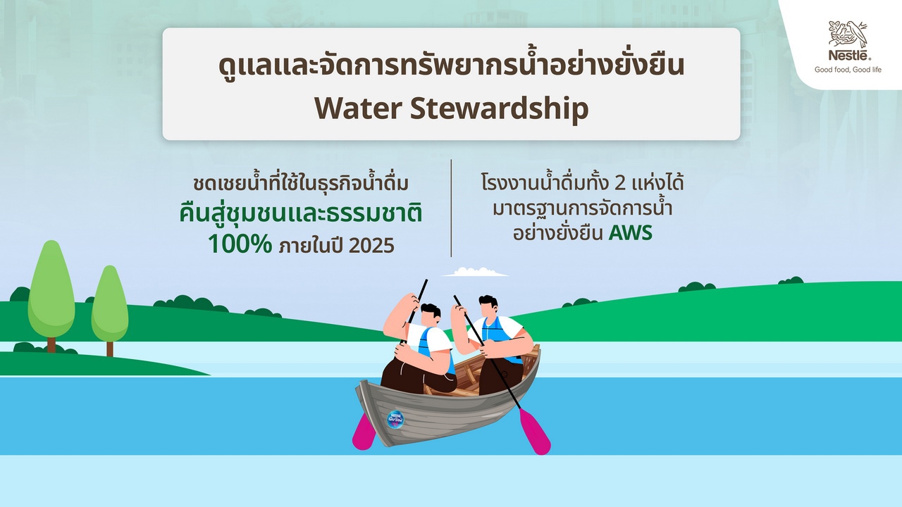 ภารกิจนี้ขับเคลื่อนผ่านโครงการ "เนสท์เล่ น้ำรักษ์น้ำ" หรือ “Nestlé Waters Cares for Water” ผ่านแนวทางหลัก 3 ด้านคือ เรียนรู้ ปกป้อง และฟื้นฟู โดยทำงานร่วมกับชุมชนอย่างใกล้ชิดผ่านกิจกรรมที่หลากหลายและสร้างสรรค์ในพื้นที่จังหวัดพระนครศรีอยุธยา ไม่ว่าจะเป็น โครงการเยาวชนพิทักษ์สายน้ำ ที่ปลูกฝังจิตสำนึกรักสายน้ำให้คนรุ่นใหม่ โครงการตลาดนัดขยะชุมชน ที่เปลี่ยนขยะให้เป็นรายได้ โครงการเนสท์เล่รักษ์ชุมชน ผักตบชวาสู่รายได้ ที่เปลี่ยนวัชพืชให้เป็นงานฝีมือสร้างอาชีพ ไปจนถึง โครงการเนสท์เล่รักษ์น้ำ คืนปลาสู่คลองขนมจีน เพื่อฟื้นฟูความหลากหลายทางชีวภาพ ขณะเดียวกัน ที่หนองทุ่งทอง จังหวัดสุราษฎร์ธานี ก็ได้ร่วมมือกับภาคีเครือข่ายฟื้นฟูแหล่งน้ำให้กลับมาอุดมสมบูรณ์อีกครั้ง ความสำเร็จนี้ยังได้รับการการันตีด้วยมาตรฐานการจัดการน้ำอย่างยั่งยืนระดับโลก (Alliance for Water Stewardship: AWS) ซึ่งตอกย้ำว่าทุกหยดของน้ำที่เนสท์เล่ใช้ จะถูกดูแลและส่งคืนกลับสู่ระบบนิเวศอย่างมีความรับผิดชอบ