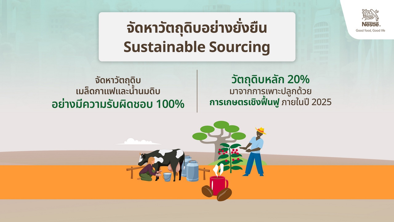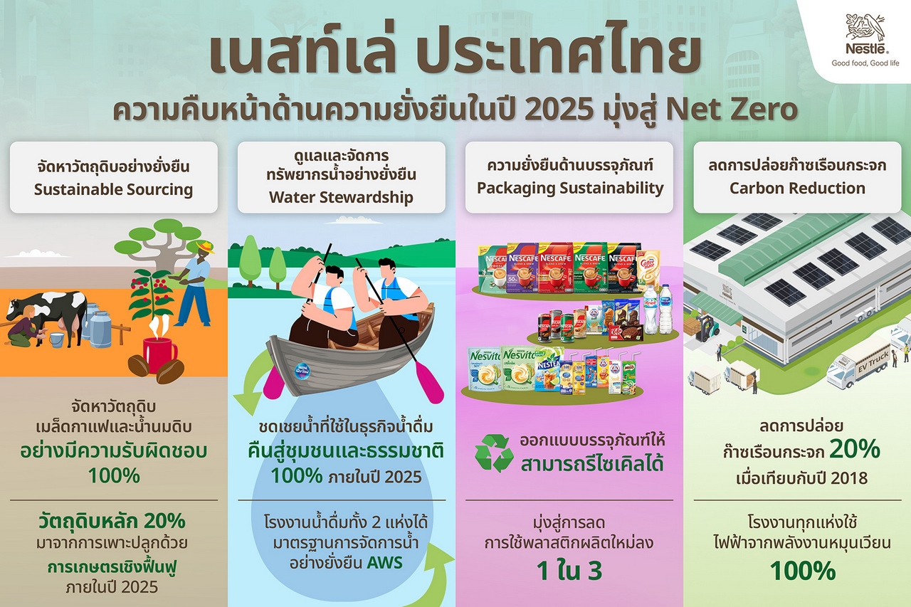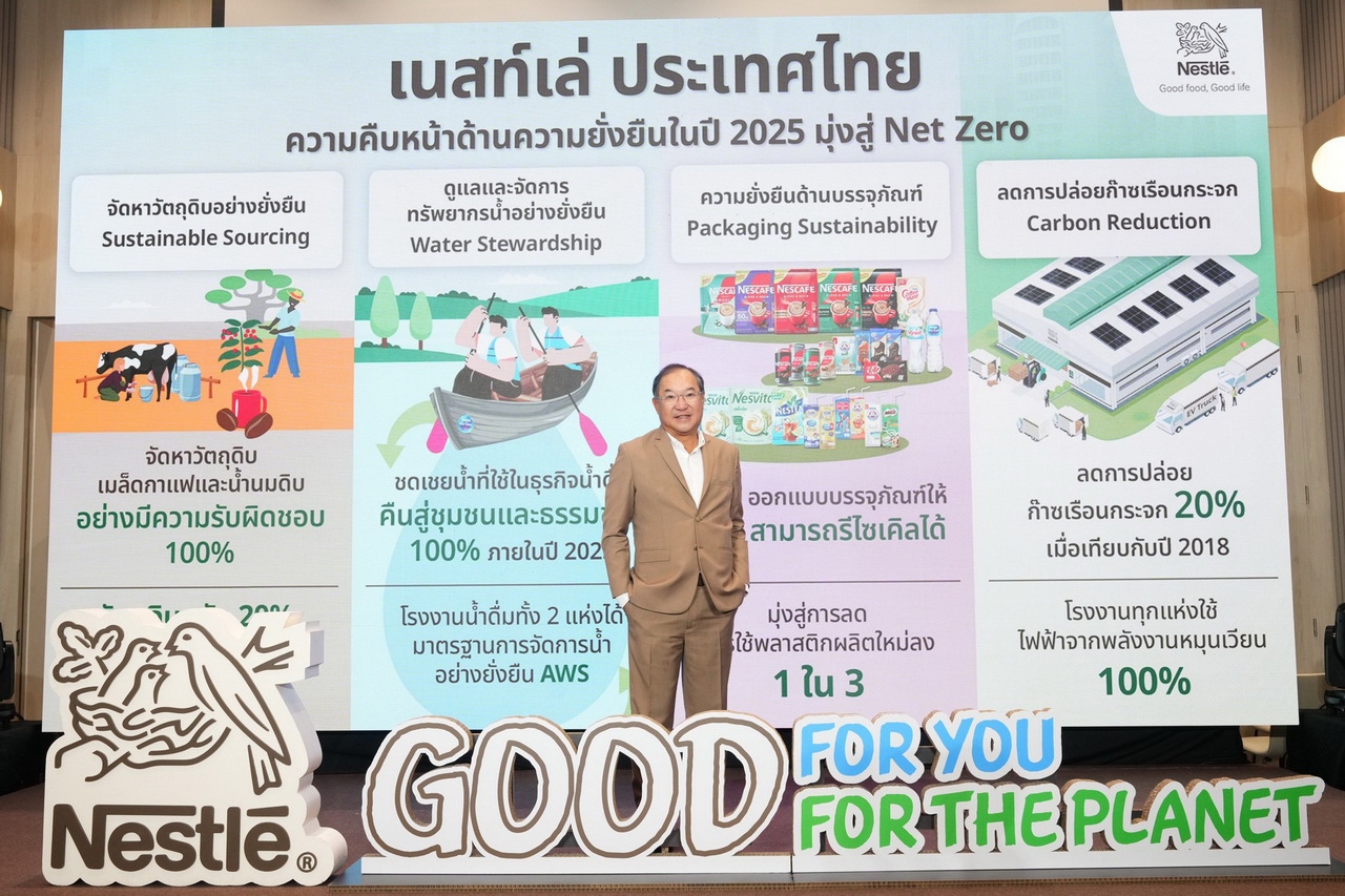 “ในฐานะบริษัทอาหารและเครื่องดื่มชั้นนำระดับโลก เนสท์เล่เชื่อมั่นในการมีบทบาทสำคัญในการพัฒนาฟื้นฟูระบบอาหารและสิ่งแวดล้อม พร้อมทั้งส่งเสริมความเป็นอยู่ที่ดีให้แก่เกษตรกร ชุมชน และตอบสนองความต้องการของผู้บริโภคด้วยผลิตภัณฑ์อาหารและเครื่องดื่มที่มีคุณภาพ รสชาติอร่อยและมีคุณค่าทางโภชนาการ จากแหล่งผลิตที่ยั่งยืน โดย เนสท์เล่ ประเทศไทย ได้ดำเนินงานตามสองกลยุทธ์หลักที่สอดคล้องกับแนวทางดังกล่าว คือ ขับเคลื่อนสิ่งดี ๆ เพื่อผู้บริโภค (Good for You) และ ขับเคลื่อนสิ่งดี ๆ เพื่อโลกของเรา (Good for the Planet) ที่มุ่งสู่ Net Zero ซึ่งในปี 2025 นี้ เรามีความคืบหน้าด้านการขับเคลื่อนความยั่งยืนในทุกมิติอย่างต่อเนื่อง”
