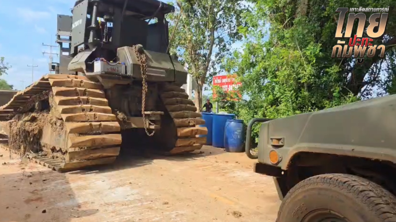 สถานการณ์ที่บ้านหนองจาน ฝั่งกัมพูชาประกาศให้ชาวบ้านออกมารวมตัวบริเวณแนวชายแดน หลังเห็นไทยนำเครื่องจักรเข้าพื้นเคลียร์พื้นที่แนวชายแดน เจ้าหน้าที่ยังตรึงกำลังรักษาความปลอดภัย