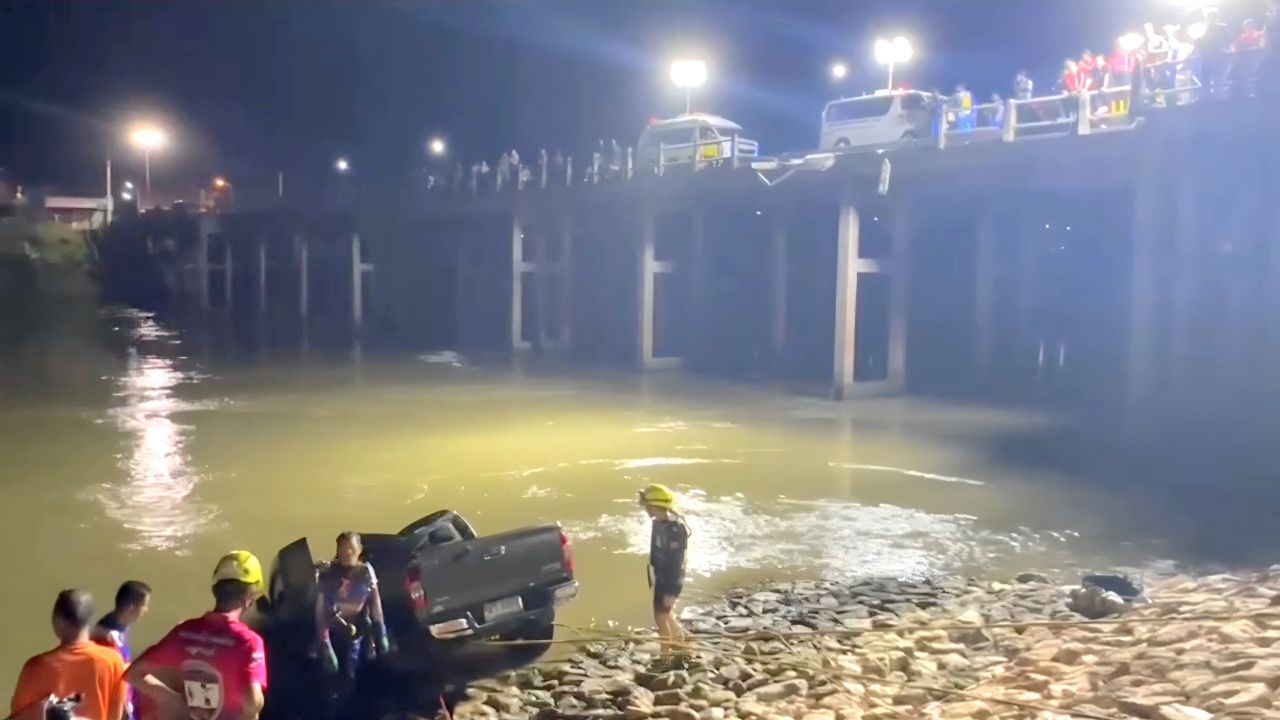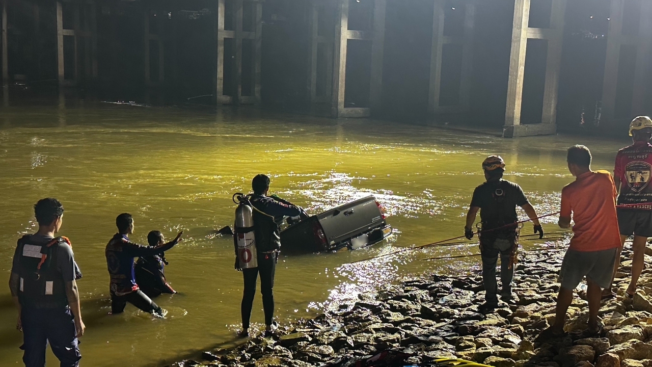 เมื่อเวลา 21.42 น. วันที่ 22 ตุลาคม 2568 ร.ต.อ.ธนากาญจน์ ทับขำ รองสารวัตรสอบสวน สภ.ลูกแก จังหวัดกาญจนบุรี รับแจ้งมีรถกระบะชนราวสะพานแล้วตกลงไปในแม่น้ำแม่กลอง จมหายไป จึงรายงานให้ พ.ต.อ.รัชพล กิตติคุณชนก ผกก.สภ.ลูกแก ทราบและประสานกับมูลนิธิขุนรัตนาวุธ นำทีมสายธาร ชุดประดาน้ำ เข้าตรวจสอบเหตุรถกระบะตกสะพานท่าเสา–ลูกแก พื้นที่หมู่ 4 ตำบลดอนขมิ้น อำเภอท่ามะกา หลังได้รับแจ้งว่ามีรถกระบะตกลงไปในแม่น้ำแม่กลอง