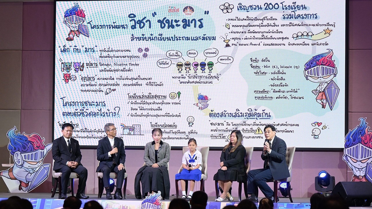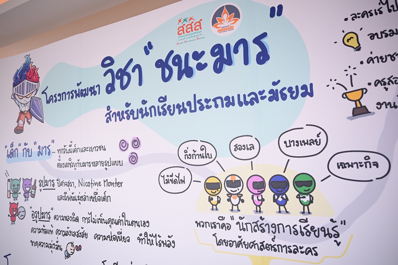 ที่โรงแรมทีเค.พาเลซ แอนด์ คอนเวนชั่น แบงคอก กรุงเทพฯ สำนักงานกองทุนสนับสนุนสร้างเสริมสุขภาพ (สสส.) ร่วมกับสำนักงานคณะกรรมการการศึกษาขั้นพื้นฐาน (สพฐ.) กระทรวงศึกษาธิการ กรมส่งเสริมการปกครองส่วนท้องถิ่น กระทรวงมหาดไทย และเมืองพัทยา มูลนิธิรณรงค์หยุดพนัน และเครือข่ายละครเพื่อการเรียนรู้ 5 ภูมิภาค จัดเวทีสาธารณะ “เชื่อมพลังครู สานต่อวิถีเรียนรู้วิชาชนะมาร” ภายใต้โครงการพัฒนากระบวนการเรียนรู้วิชาชนะมาร สำหรับนักเรียนประถมศึกษาตอนปลาย และมัธยมศึกษาตอนต้น