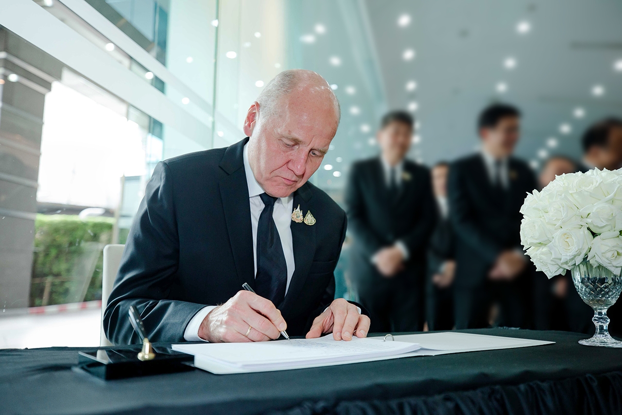 บมจ.ทรู คอร์ปอเรชั่น โดย นายซิกเว่ เบรกเก้ ประธานคณะผู้บริหารกลุ่ม นำคณะผู้บริหารและพนักงานทรู คอร์ปอเรชั่น ทั่วประเทศ ร่วมพิธีแสดงความอาลัย เบื้องหน้าพระฉายาลักษณ์ สมเด็จพระนางเจ้าสิริกิติ์ พระบรมราชินีนาถ พระบรมราชชนนีพันปีหลวง ณ อาคารทรู ทาวเวอร์ ถนนรัชดาภิเษก ด้วยสำนึกในพระมหากรุณาธิคุณอันหาที่สุดมิได้ของ “พระมารดาแห่งแผ่นดิน” ผู้ทรงเป็นพระมิ่งขวัญและร่มโพธิ์ร่มไทรของปวงชนชาวไทย พระองค์ทรงเปี่ยมด้วยพระเมตตา ทรงบำเพ็ญพระราชกรณียกิจนานัปการเพื่อประโยชน์สุขของพสกนิกร จึงทรงเป็นศูนย์รวมแห่งความรัก ความศรัทธา และความผูกพันของคนไทยทั้งชาติ อันเป็นแรงบันดาลใจให้ทุกคนมุ่งมั่นสืบสานเจตนารมณ์แห่งความดีงามและดำเนินรอยตามเบื้องพระยุคลบาทสืบไป