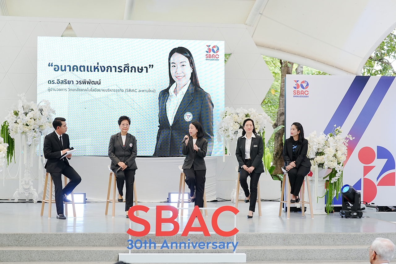 ในโอกาสพิเศษนี้ ทางวิทยาลัยฯ ได้จัดกิจกรรมเสวนาในหัวข้อ “AI เพื่อการศึกษาสู่อนาคต: จุดเริ่มต้นของทักษะแห่งศตวรรษใหม่” เพื่อสร้างความตระหนักต่อการใช้เทคโนโลยีดิจิทัลเป็นเครื่องมือในการจัดการการศึกษาและการทำงานของทั้งภาคการศึกษาและสถานประกอบการ โดยมีผู้ทรงคุณวุฒิ 4 ท่านร่วมแลกเปลี่ยนแนวคิด ได้แก่ ดร.ปราศรัย ประวัติรุ่งเรือง ผู้ก่อตั้งและผู้รับใบอนุญาต วิทยาลัยเทคโนโลยีสยามบริหารธุรกิจ (SBAC), ดร.อิสริยา วรพิพัฒน์ ผู้อำนวยการ วิทยาลัยเทคโนโลยีสยามบริหารธุรกิจ (SBAC), ผศ.ดร.ปัทมา รูปสุวรรณกุล รองอธิการบดีอาวุโส มหาวิทยาลัยนอร์ทกรุงเทพ และดร.ศุภธิดา พรหมพยัคฆ์ ประธานเจ้าหน้าที่บริหาร The S Curve ดำเนินรายการโดย คุณนนทกฤช กลมกล่อม บรรณาธิการบริหารฝ่ายข่าว ช่อง Mono 29