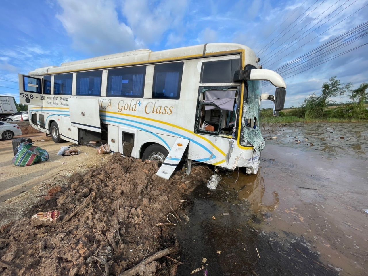 ตรวจสอบห่างออกไป 50 เมตรพบรถบัสที่ชนท้ายทะเบียนอุบลราชธานี เสียหลักลงข้างทางภายในรถมีผู้โดยสารจำนวน 19 คน ได้รับบาดเจ็บเล็กน้อย เจ้าหน้าที่นำส่งโรงพยาบาลพนมสารคาม
