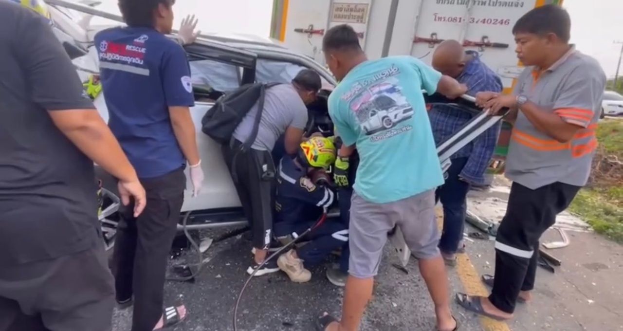 เมื่อเวลา 15.30 น. วันที่ 6 พ.ย. 68 ร.ต.อ.อรวรรณ มิตยสิทธิ์ รองสารวัตรสอบสวน สภ.พนมสารคาม รับแจ้งเหตุรถชนกัน 5 คันรวดติดภายใน บนถนน 304 พนมสารคาม มุ่งหน้าแยกหนองปลาตะเพียน ม.5 ปลายกระจับ ต.เมืองเก่า อ.พนมสารคาม จึงประสานกู้ชีพพนมสารคามและหน่วยกู้ภัยพนมสารคามนำเครื่องตัดถ่างเข้าร่วมให้การช่วยเหลือ