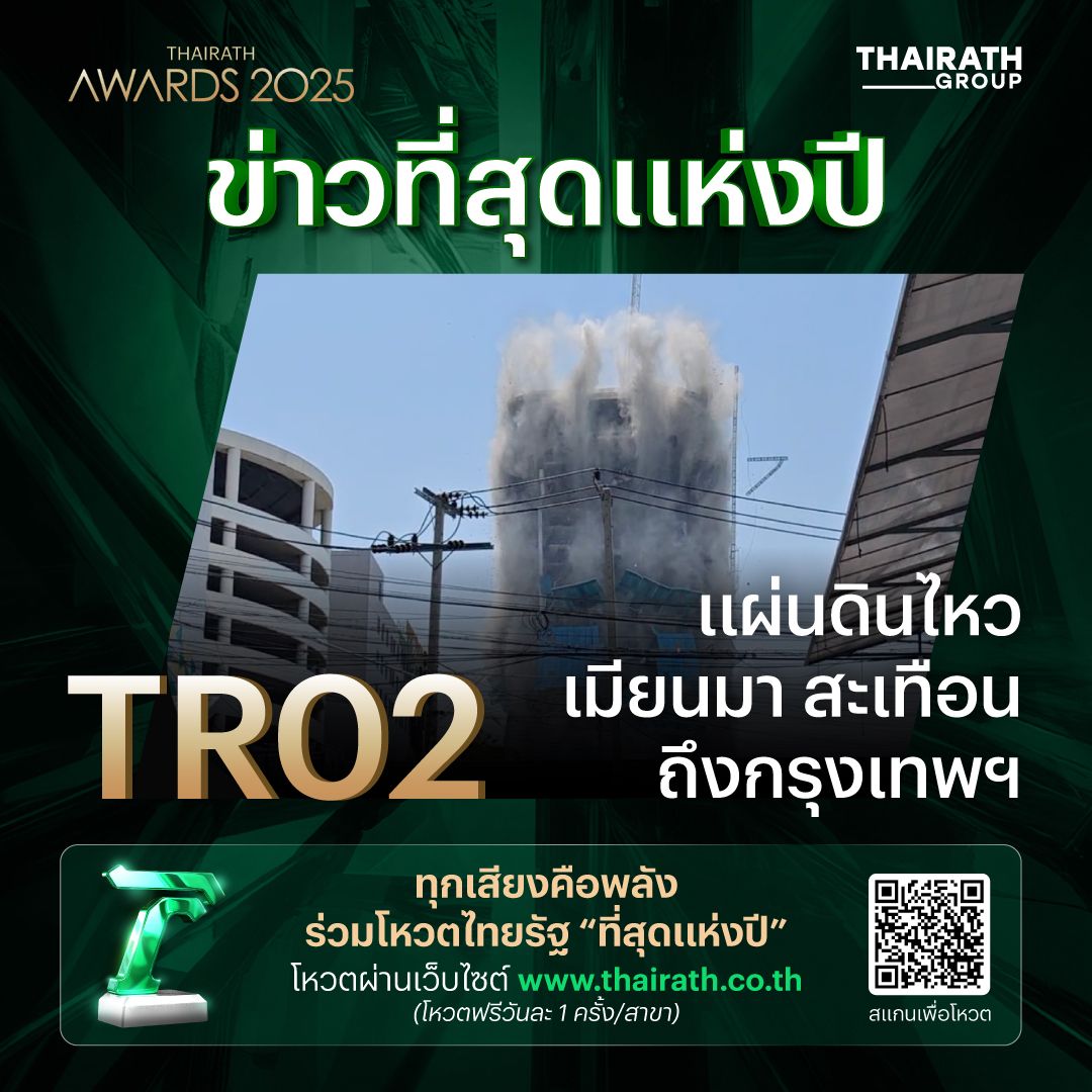 ย้อนเหตุการณ์ "แผ่นดินไหวเมียนมา" สะเทือนถึงกรุงเทพฯ ได้เข้าชิง "ข่าวที่สุดแห่งปี" หลังมีผู้โหวตให้เข้าชิง "ข่าวที่สุดแห่งปี" จากงาน "ไทยรัฐที่สุดแห่งปี 2025"