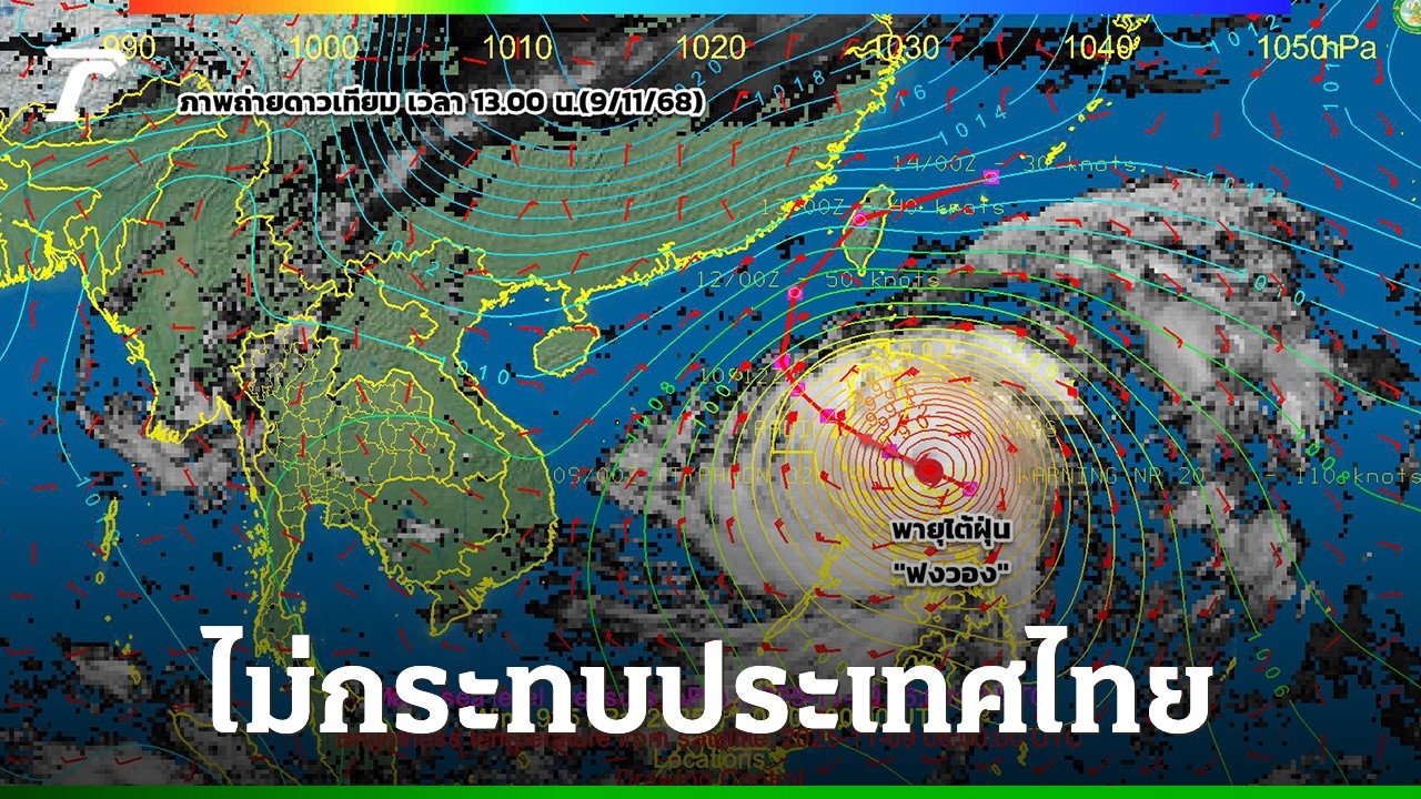 "กรมอุตุนิยมวิทยา" อัปเดตเส้นทางพายุไต้ฝุ่น "ฟงวอง" เคลื่อนเข้าสู่เกาะลูซอลแล้ว ยังคงซ้ำพื้นที่เดิม โดยไม่มีผลกระทบต่อประเทศไทย