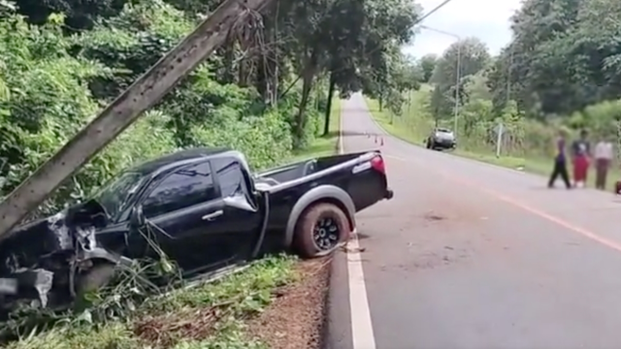 กาญจนบุรี กระบะลักลอบขนแรงงานต่างด้าว ซิ่งหนี ตร. ก่อนเสียหลักพุ่งชนเสาไฟข้างทางรถพังยับ แรงงานเถื่อนชาวพม่าเจ็บยกคัน 21 ราย ส่วนคนขับ อาศัยช่วงชุลมุนหลบหนีไปได้