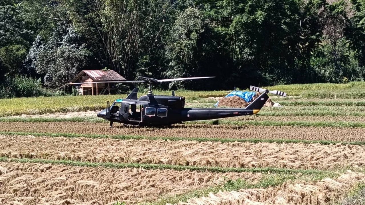 แม่ฮ่องสอน ชาวบ้านแตกตื่น เฮลิคอปเตอร์ ทหาร ลงจอดฉุกเฉินกลางทุ่งนา หน่วยงานต้นสังกัดชี้แจง กำลังกลับจากบินไปส่งสัมภาระให้หน่วยปฏิบัติตามแนวชายแดน อ.ขุนยวม /อ.แม่สะเรียง อยู่ระหว่างดำเนินการหาสาเหตุ
