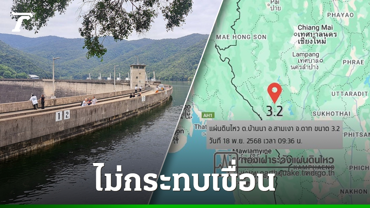 เวลา 09.36 น. เกิดเหตุ "แผ่นดินไหวตาก" ขนาด 3.2 ความลึก 1 กม. จุดศูนย์กลางบริเวณ ต.บ้านนา อ.สามเงา ห่างเขื่อนภูมิพลประมาณ 48.81 กม. ล่าสุด "กฟผ." ยันแผ่นดินไหวครั้งนี้ ไม่มีผลกระทบต่อความมั่นคงของเขื่อนต่างๆ