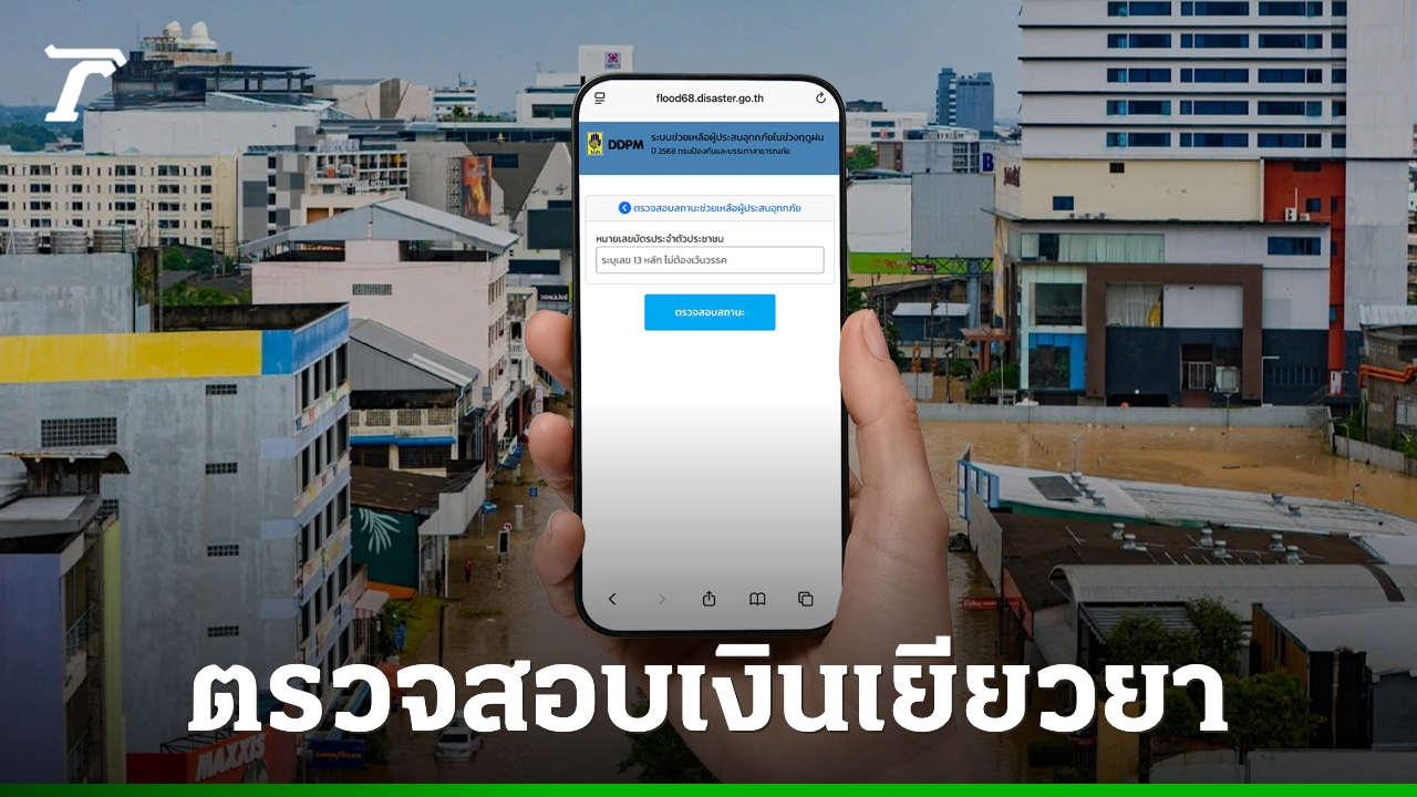 ตรวจสอบสถานะ "เงินเยียวยาน้ำท่วม 2568" https://flood68.disaster.go.th อัปเดตล่าสุด "เงินน้ำท่วม 9,000 บาท" โอนเงินให้ผู้ประสบภัยแล้วรวม 5,873,805,000 บาท