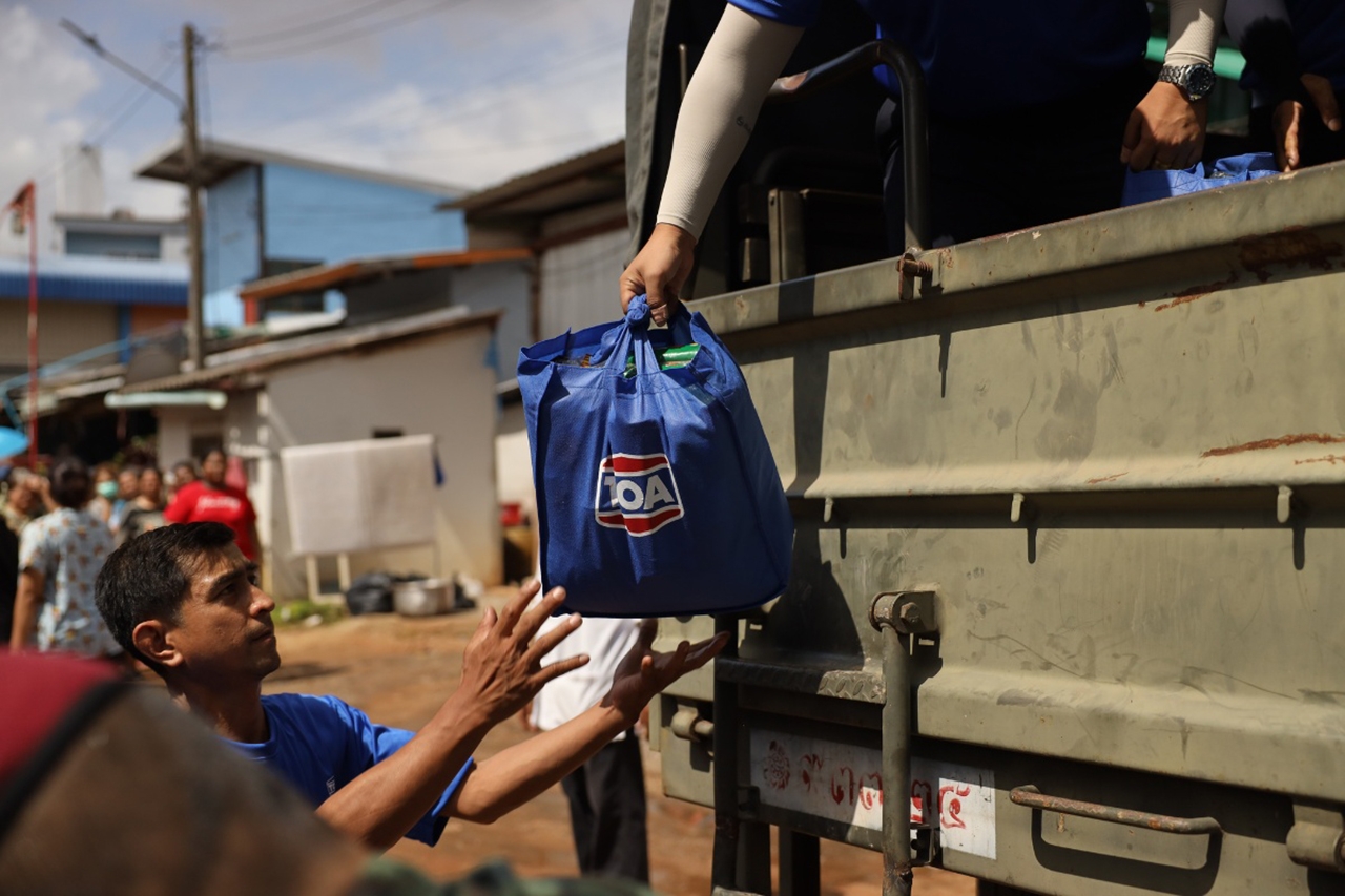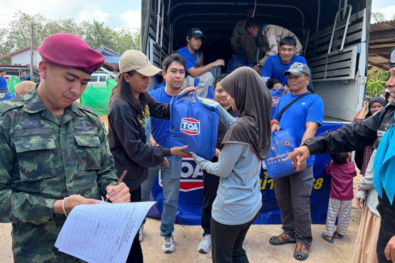 นายประจักษ์ ตั้งคารวคุณ ประธานผู้ก่อตั้ง TOA เผยว่า จากความเสียหายอย่างหนักที่เกิดจากอุทกภัยครั้งใหญ่ในภาคใต้ ซึ่งส่งผลกระทบต่อชีวิตความเป็นอยู่ของพี่น้องประชาชน และระบบสาธารณสุขโดยตรง เราจึงมีความห่วงใยและเข้าใจถึงความยากลำบากที่ทุกคนกำลังเผชิญ จึงพร้อมเป็นส่วนหนึ่งในการสนับสนุน ช่วยเหลือ เยียวยา และฟื้นฟูผู้ประสบอุทกภัยอย่างต่อเนื่องหลังสถานการณ์น้ำท่วมคลี่คลายลง เดินหน้า โครงการ TOA ไม่ทิ้งกัน “รวมพลังไทย ฟื้นฟูน้ำท่วมภาคใต้” ตั้งแต่การลงพื้นที่ช่วยเหลือเยียวยาพี่น้องประชาชนชาวใต้ ในการระดมทีม “ทีโอเอ อาสา” ร่วมกับกำลังทหาร (กอ.รมอ.ภาค 4 ส่วนหน้า, กองทัพภาคที่ 4, มณฑลทหารบกที่ 42) ส่งมอบถุงยังชีพกว่า 2,000 ชุด ประกอบด้วย ข้าวสาร บะหมี่กึ่งสำเร็จรูป ปลากระป๋อง ถั่วมารูโจ้ น้ำยาทำความสะอาดทีโพล์ และสเปรย์กำจัดแมลงเชนไดร้ท์ รวมทั้งสิ่งของบรรเทาทุกข์ ผ้าห่มกันหนาว เสื้อยืด น้ำดื่ม และชุดผลิตภัณฑ์ทำความสะอาดทีโพล์ แจกจ่ายให้แก่ประชาชนในพื้นที่ชุมชนต่างๆ ที่ได้รับผลกระทบอย่างทั่วถึง อาทิ ชุมชนบ้านกลางนา ชุมชนอู่ ทส. ชุมชนจันทร์วิโรจน์ ชุมชนบางแฟ้บ ชุมชนบ้านพักรถไฟ ชุมชนศิครินทร์ และชุมชนรายย่อยอื่นๆ รวมทั้งในพื้นที่จังหวัดยะลา และปัตตานี เพื่อเร่งเยียวยา ให้ความช่วยเหลือเข้าถึงทุกคนอย่างทั่วถึงและรวดเร็วที่สุด
