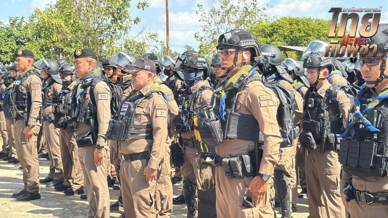 ล่าสุดผู้สื่อข่าวรายงานว่า เมื่อเวลาประมาณ 13.00 น. วันที่ 8 ธันวาคม 2568 พ.ต.อ.จตุรภัทร สิงหัษฐิต รอง ผบก.ภ.จว.สระแก้ว, พ.ต.อ.ต่อศักดิ์ ศรีเสริม รอง ผบก.ภ.จว.สระแก้ว, พ.ต.อ.ดำรง เอี่ยมไพโรจน์ ผกก.สืบสวน ภ.จว.สระแก้ว, พ.ต.อ.ชูชาติ คงเมือง ผกก.สภ.คลองลึก, พ.ต.อ.วีพงษ์ กงแก้ว ผกก.สภ.อรัญประเทศ, พ.ต.อ.สุทธิพงษ์ อินทสิทธิ์ ผกก.สภ.โคกสูง ได้เรียกกำลังชุด คฝ.ภ.จว.สระแก้ว และเจ้าหน้าที่ตำรวจ กก.สส.ภ.จว.สระแก้ว จำนวน 400 นาย
