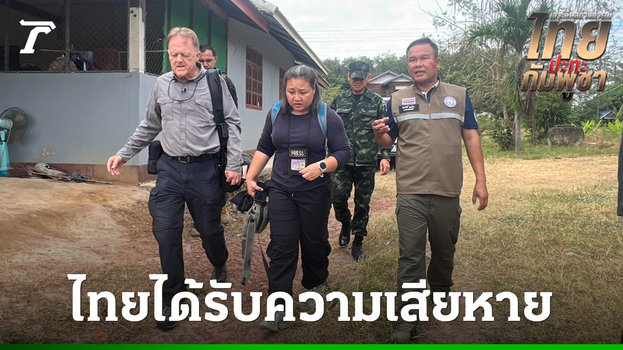กองทัพภาคที่ 2 นำผู้สื่อข่าวต่างประเทศลงพื้นที่ได้รับความเสียหายจาก BM-21 ในพื้นที่เทศบาลตำบลจันทบเพชร จังหวัดบุรีรัมย์