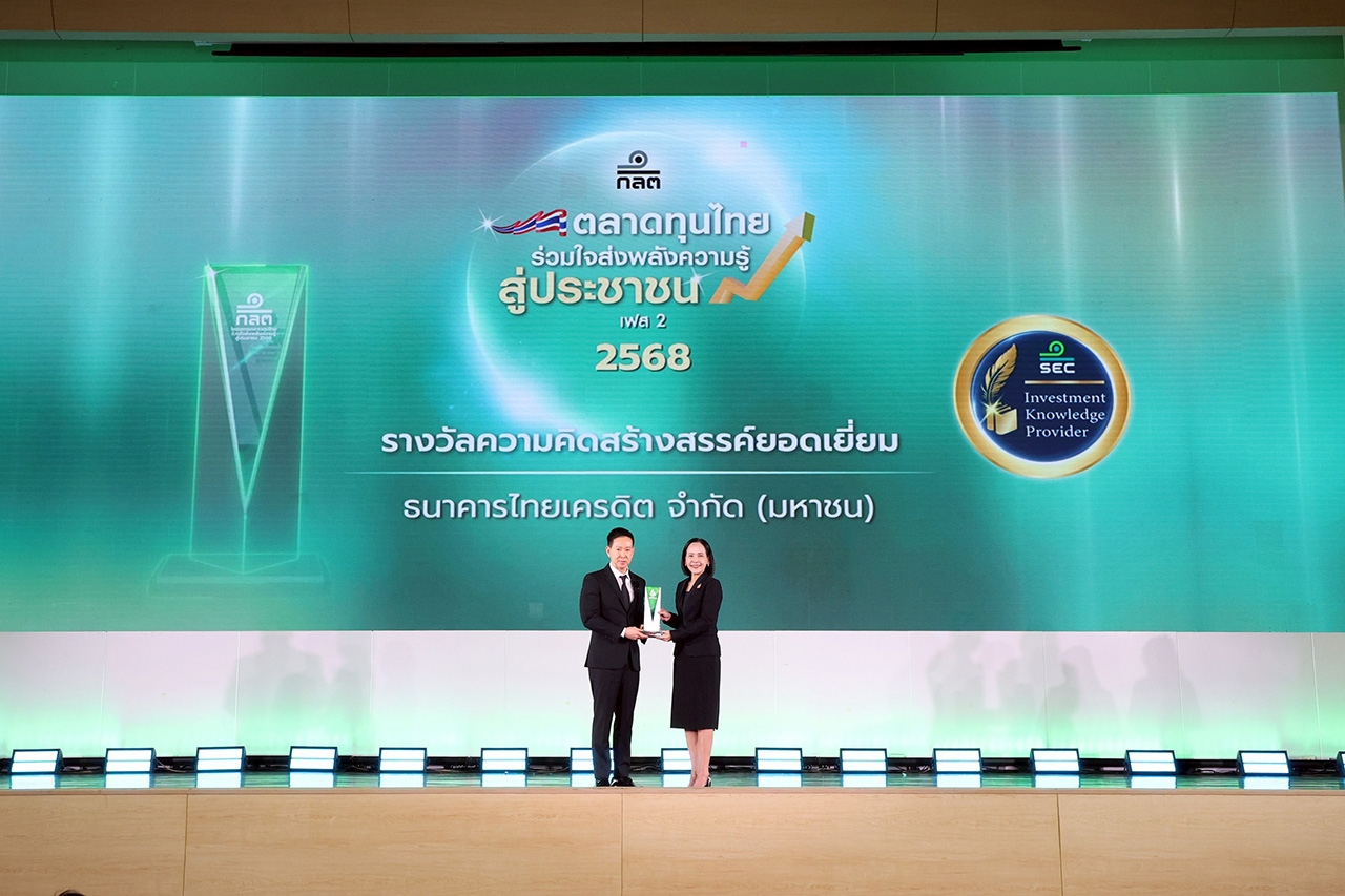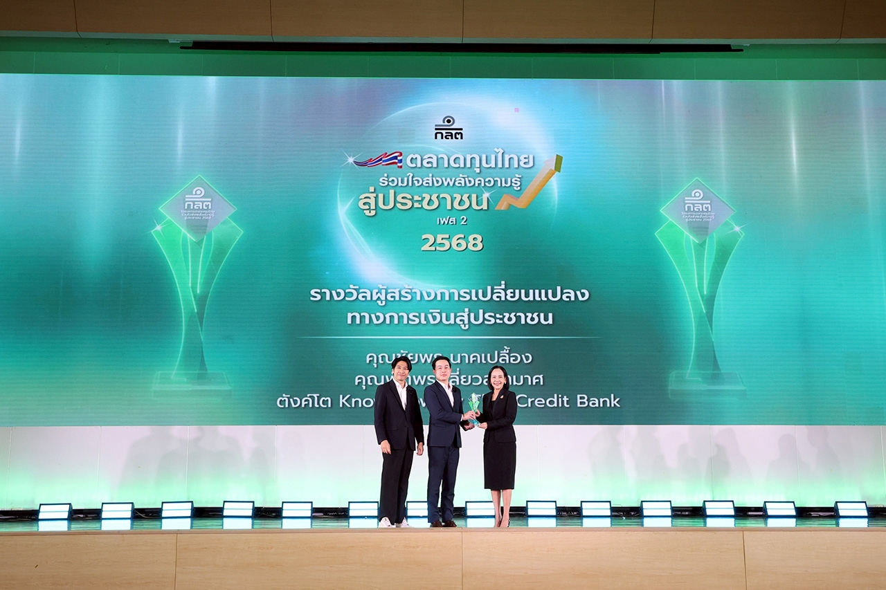 ธนาคารไทยเครดิต จำกัด (มหาชน) คว้า 2 รางวัล จากสำนักงานคณะกรรมการกำกับหลักทรัพย์และตลาดหลักทรัพย์ (ก.ล.ต.) ภายใต้โครงการ “ตลาดทุนไทย ร่วมใจส่งพลังความรู้สู่ประชาชน เฟส 2 ปี 2568” ได้แก่ รางวัล “ความคิดสร้างสรรค์ยอดเยี่ยม” (Creativity Awards) และ รางวัล “ผู้สร้างการเปลี่ยนแปลงทางการเงินสู่ประชาชน” (The Financial Changemaker Award) จากผลสำเร็จของโครงการ “ตังค์โต Know-how” ที่ดำเนินการส่งเสริมความรู้ทางการเงินมาตลอด 9 ปี โดยครอบคลุม 76 จังหวัดทั่วประเทศ และมีผู้เข้าร่วมกว่า 300,000 คน โดยมีนายกมลภู ภูริดิฐสกุล รองกรรมการผู้จัดการ กลุ่มบริหารธุรกิจไมโครไฟแนนซ์และสาขาสินเชื่อ เป็นผู้แทนธนาคารเข้ารับมอบรางวัลจาก ศาสตราจารย์ ดร.พรอนงค์ บุษราตระกูล เลขาธิการสำนักงานคณะกรรมการกำกับหลักทรัพย์และตลาดหลักทรัพย์ เมื่อวันที่ 15 ธันวาคม 2568 ณ ห้องมีฆวาน รังสรรค์ สโมสรทหารบก