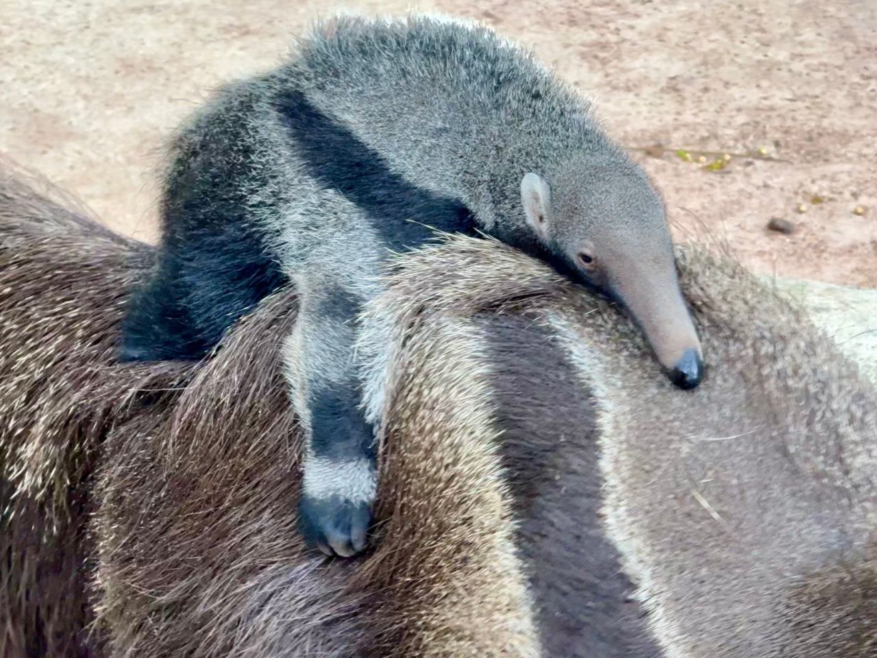 วันที่ 18 ธันวาคม 2568 ที่สวนสัตว์เปิดเขาเขียว อ.ศรีราชา จ.ชลบุรี นายณรงวิทย์ ชดช้อย ผู้อำนวยการสวนสัตว์เปิดเขาเขียว เปิดเผยว่า เมื่อวันที่ 21 ตุลาคม 2568 ที่ผ่านมา สวนสัตว์เปิดเขาเขียวเปิดตัวสมาชิกใหม่ตัวล่าสุด “ลูกตัวกินมดยักษ์” เพศผู้จำนวน 1 ตัว จากแม่ชื่อ วิลสัน อายุ 19 ปี และพ่อชื่อ ซานดิเอโก อายุ 20 ปี ขณะนี้มีสุขภาพแข็งแรงดี แต่ยังไม่มีชื่อ