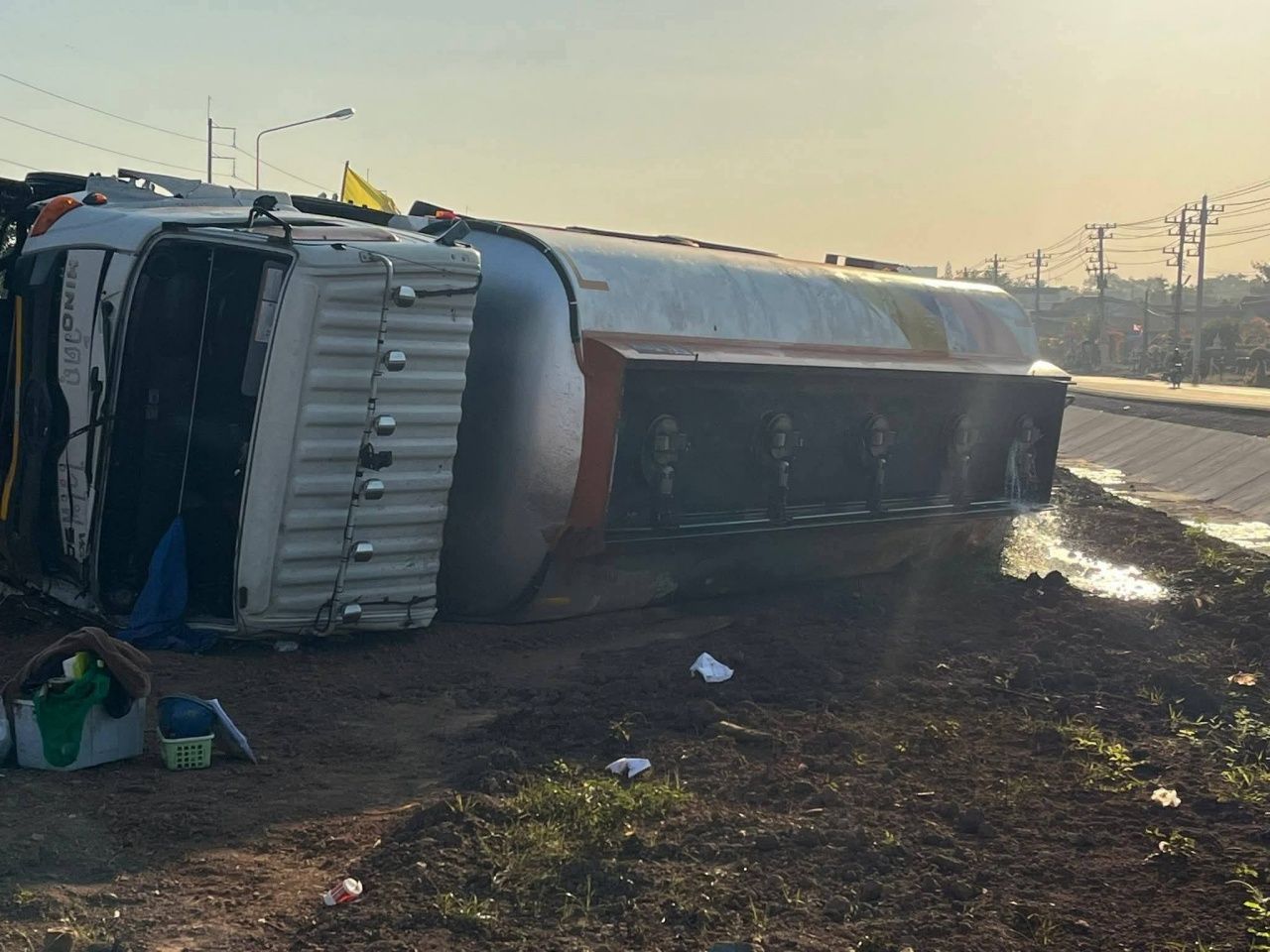 ที่เกิดเหตุอยู่ช่วงขาเข้าพื้นที่ จ.นครราชสีมา บนหลักกิโลเมตรที่ 78+200 ทางหลวงหมายเลข 24 ถ.สีคิ้ว-อุบลราชธานี พบรถบรรทุกน้ำมัน เลขทะเบียน 70-3871 อุบลราชธานี เสียหลักชนเสาไฟฟ้า ก่อนลงทางข้ามเลนชนรถยนต์ ยี่ห้อ โตโยต้า รุ่น ฟอร์จูนเนอร์ สีขาว เลขทะเบียน งต 8539 นครราชสีมา โดยรถบรรทุกน้ำมันได้พลิกตะแคงข้างทำให้น้ำมันดีเซลหลายพันลิตรไหลออกมาตลอดเวลา เจ้าหน้าที่ อบต.บ้านใหม่ และอาสาสมัครหน่วยกู้ภัยสว่างเมตตา จุด อ.หนองบุญมาก ต้องกระจายกำลังปิดกั้นเส้นทางและใช้น้ำฉีดก่อนนำทรายมากลบคราบน้ำมันที่ไหลนองพื้นที่