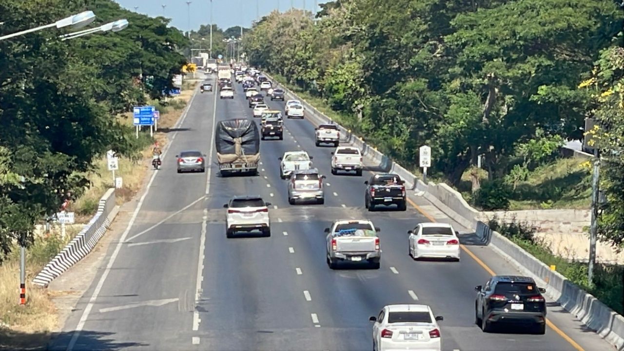 ถนนสายเอเชีย รถผ่านอย่างต่อเนื่อง เต็มทุกช่องจราจร ประชาชนแห่เดินทางกลับภูมิลำเนา และท่องเที่ยวภาคเหนือในช่วงวันหยุดยาวเทศกาลปีใหม่