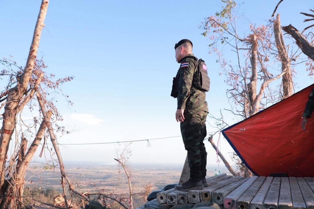 ความเคลื่อนไหวสถานการณ์ชายแดนไทย-กัมพูชา เมื่อวันที่ 28 ธันวาคม 2568 ผู้สื่อข่าวรายงานว่า วันนี้ ทางด้าน พล.อ.ชัยพฤกษ์ ด้วงประพัฒน์ เสนาธิการทหารบก พร้อม พล.ท.วีระยุทธ รักศิลป์ แม่ทัพภาคที่ 2 และคณะ ลงพื้นที่ตรวจภูมิประเทศ เนิน 350 และปราสาทตาควาย จ.สุรินทร์ ยืนยันการควบคุมพื้นที่อธิปไตยของไทยอย่างสมบูรณ์ ธงไตรรงค์โบกสะบัดอย่างสง่างาม บนผืนแผ่นดินไทย